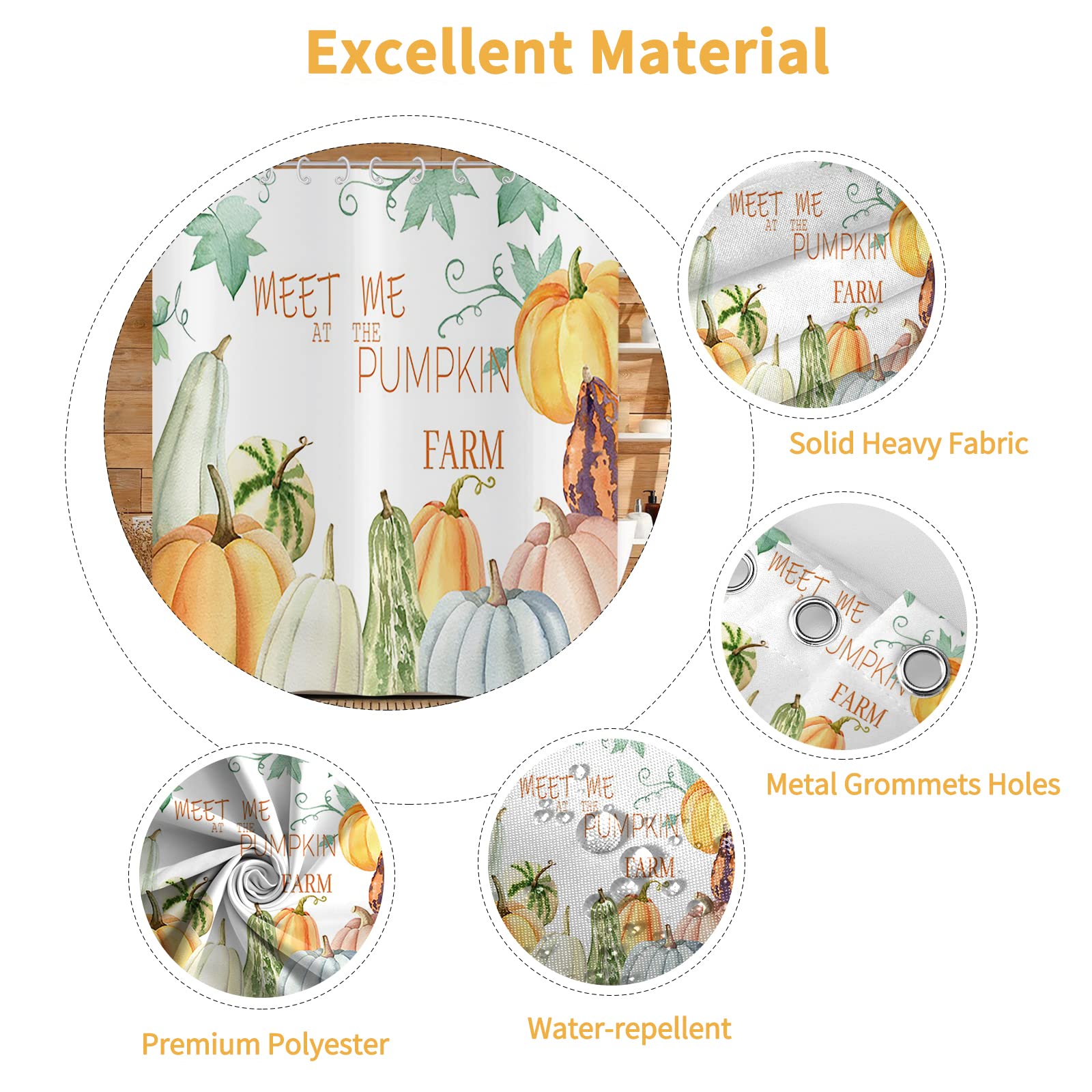 Kürbis Duschvorhang Herbst Ernte Thema Badevorhang Frauen Thanksgiving Day Geschenke Wasserdichter Vorhang Glückliche Herbst Y'All Badezimmer Dekor Rustikale Farmstyle Sonnenblumen Vorhang,180Bx200L