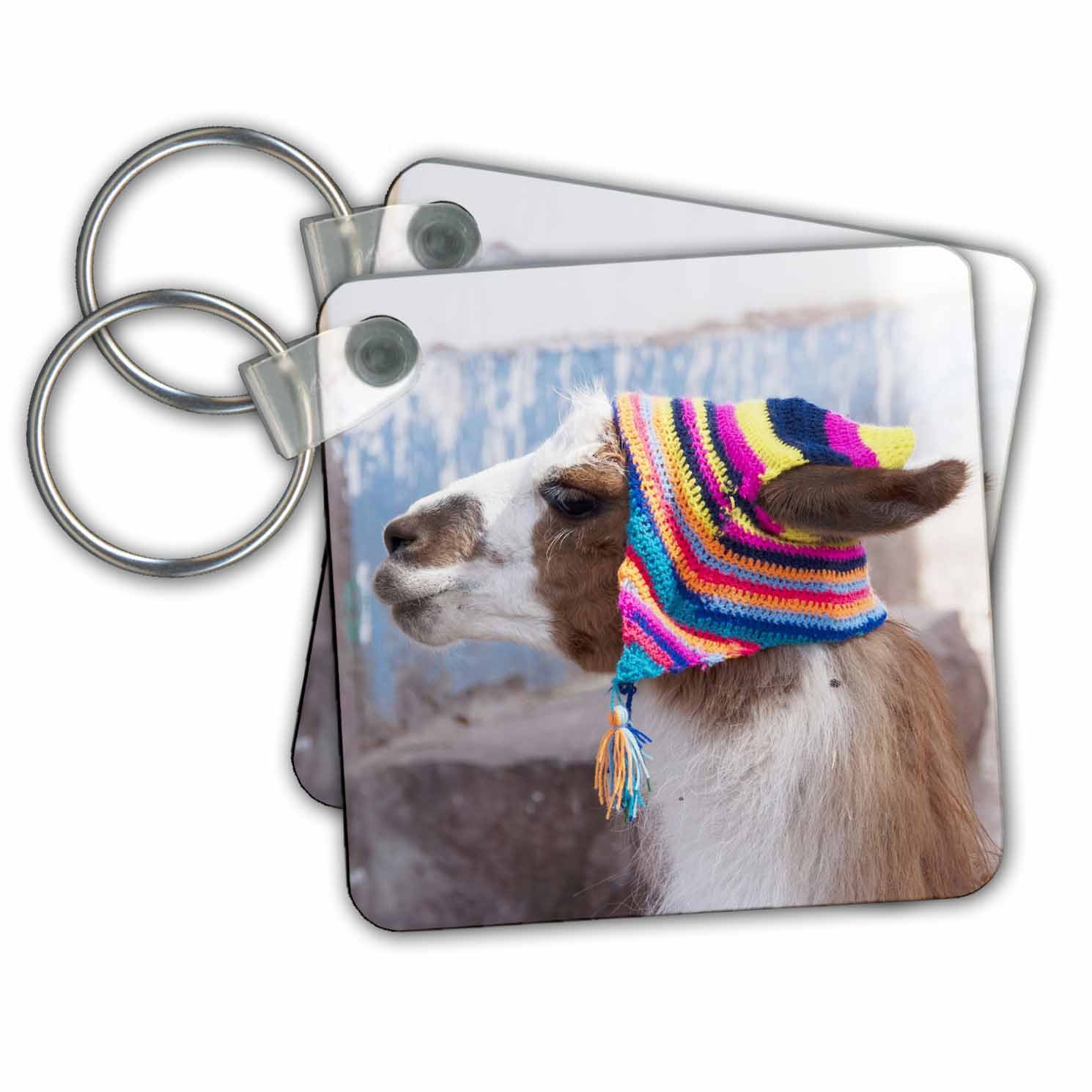 3dRose Peru, Bir Köyde Lama - SA17 JRI0005 - Jutta Riegel - Anahtarlıklar, 5,7 X 11,4 Cm, 2'li Set (kc_87024_1
