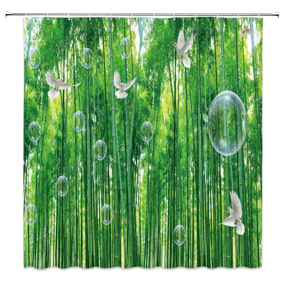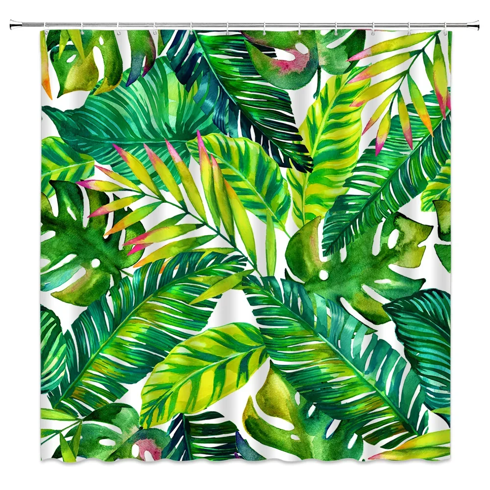 KDYDK Tropischer Regenwald Duschvorhang Dschungel Grün Palmen Blätter Natur Landschaft Pflanze Outdoor Exotische Pflanzen Stoff Bad Dekor Vorhang Mit Haken