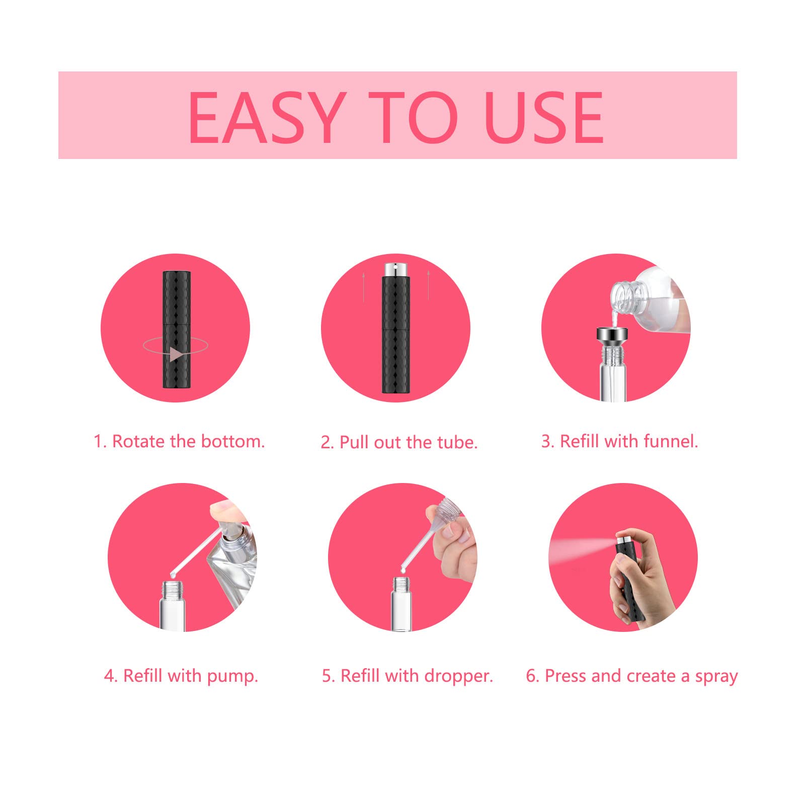 Kein Ärger mehr, die Kappe überall zu finden Die Oberfläche ist mit einem eloxierten Aluminiumverfahren gefärbt, einfach und stilvoll. Wenn Sie einen beschädigten Artikel erhalten, kontaktieren Sie uns bitte, wir werden alles tun, um Sie zufrieden zu stellen Mini Parfum Männer KOIBITO Parfümzerstäuber (8 Ml), Leere Mini-Sprühflasche, Nachfüllbar Rdt Spray Paket enthält - Es gibt 4 Stück Parfümzerstäuber (Rosa,Golden,Blau,Schwarz) in die Packung. 5ml/Stk. Perfekt für die Speicherung einige Ihrer Lieblings-Parfum/Aftershave in einem kleineren Behälter 【Einfach zu befüllen】Vier Schritte:1., Drehen Sie den Boden im Uhrzeigersinn., 2., Ziehen Sie das Rohr heraus., 3., Nachfüllen mit Werkzeugen., 4., Setzen Sie das Rohr zurück. Stilvolles Design: Drehen Sie einfach sanft die Unterseite wie mit einem Lippenstift und drücken Sie die Oberseite, um den feinen Nebel zu sprühen. Funktion: 4 Stück 8ml Zerstäuber Parfümflaschen werden verwendet, um Parfüm, Köln und Kosmetik auf Reisen oder Ausgehen zu dosieren. Sie können verschiedene Zubehörteile auswählen, um Kosmetika nach Ihren Bedürfnissen zu füllen. Der Sprüher ist nachfüllbar und tragbar, ohne Tropfen oder Auslaufen Tagdodo Parfümzerstäuber Nachfüllbar 5ML, 4 Stück Parfüm Zerstäuber für Unterwegs, Mini Portable Funktion: 4 x 8 ml Zerstäuber Parfümflaschen werden verwendet, um Parfüm, Köln und Kosmetika auf Reisen oder Ausflügen zu dosieren. Der Sprüher ist nachfüllbar und tragbar, ohne Tropfen oder Auslaufen
