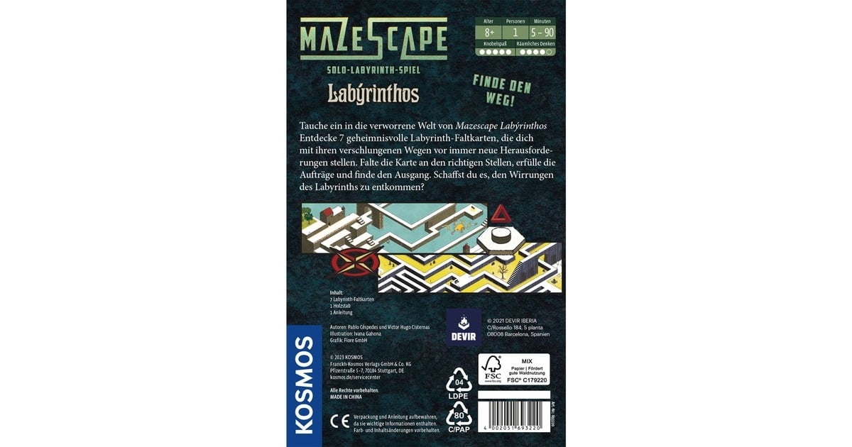 KOSMOS 693220 Mazescape Labýrinthos, Solo-Labyrinth-Spiel, Knobelspiel