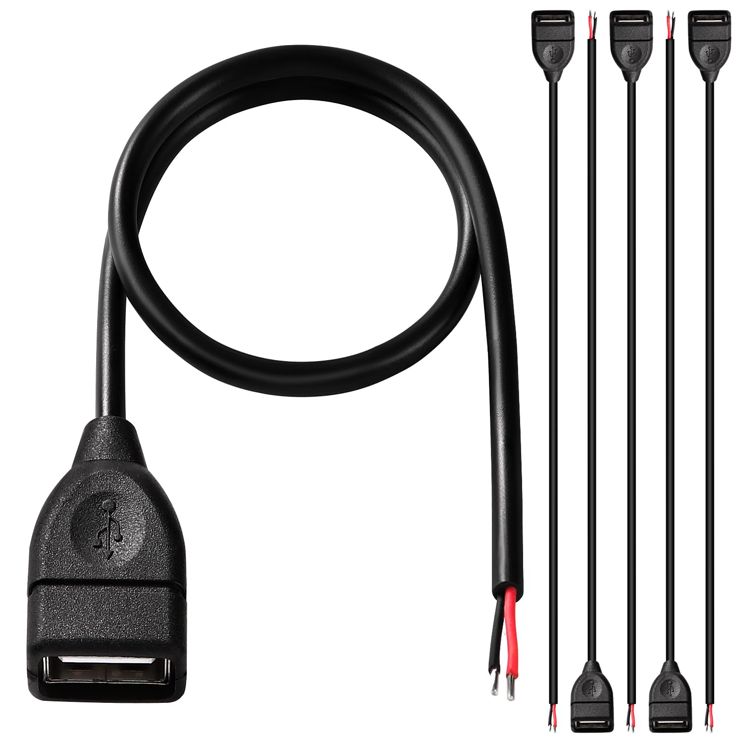 KUOQIY 5 Pieces USB-A Female 5V/3A Pigtail Open End Power Cable, 30 Cm 22 AWG USB 2.0 Female 2-Pin Wire DIY Pigtail Cable For USB Devices Repair DIY