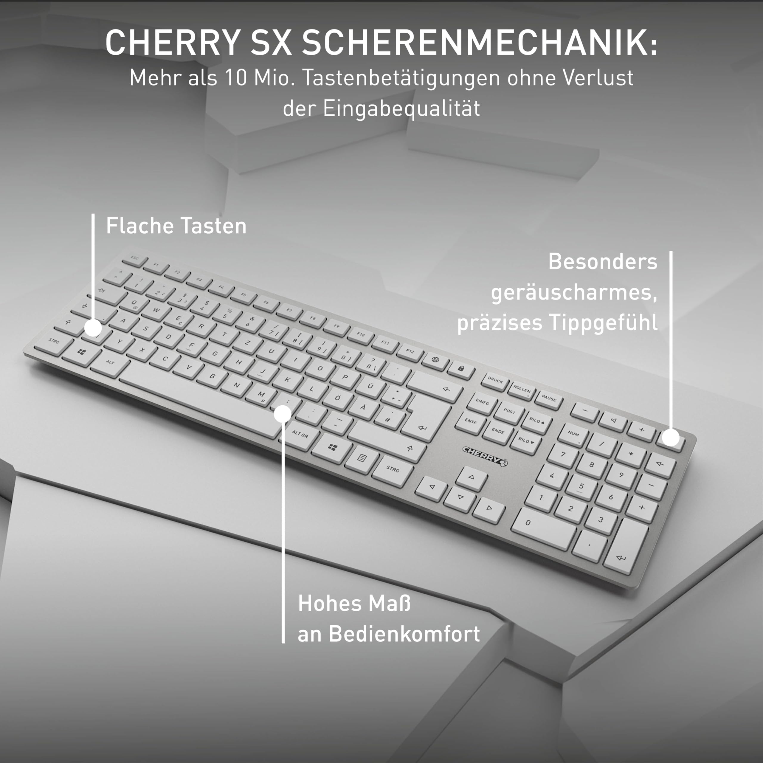 CHERRY KW 3000, Kabellose Tastatur Mit Nummernblock, Deutsches Layout
