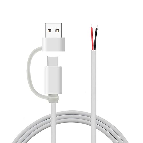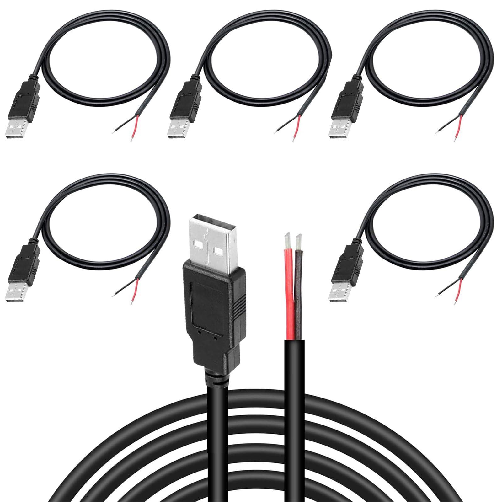 Rakiuty 2 Stück 2 M Langes USB Pigtail, 2 Adriges USB 2.0 Kabel, 2-poliger Blanker Draht Mit Offenem Ende, 2 M Langes USB Steckerkabel, 5 V 2 A USB Stecker Stromkabel