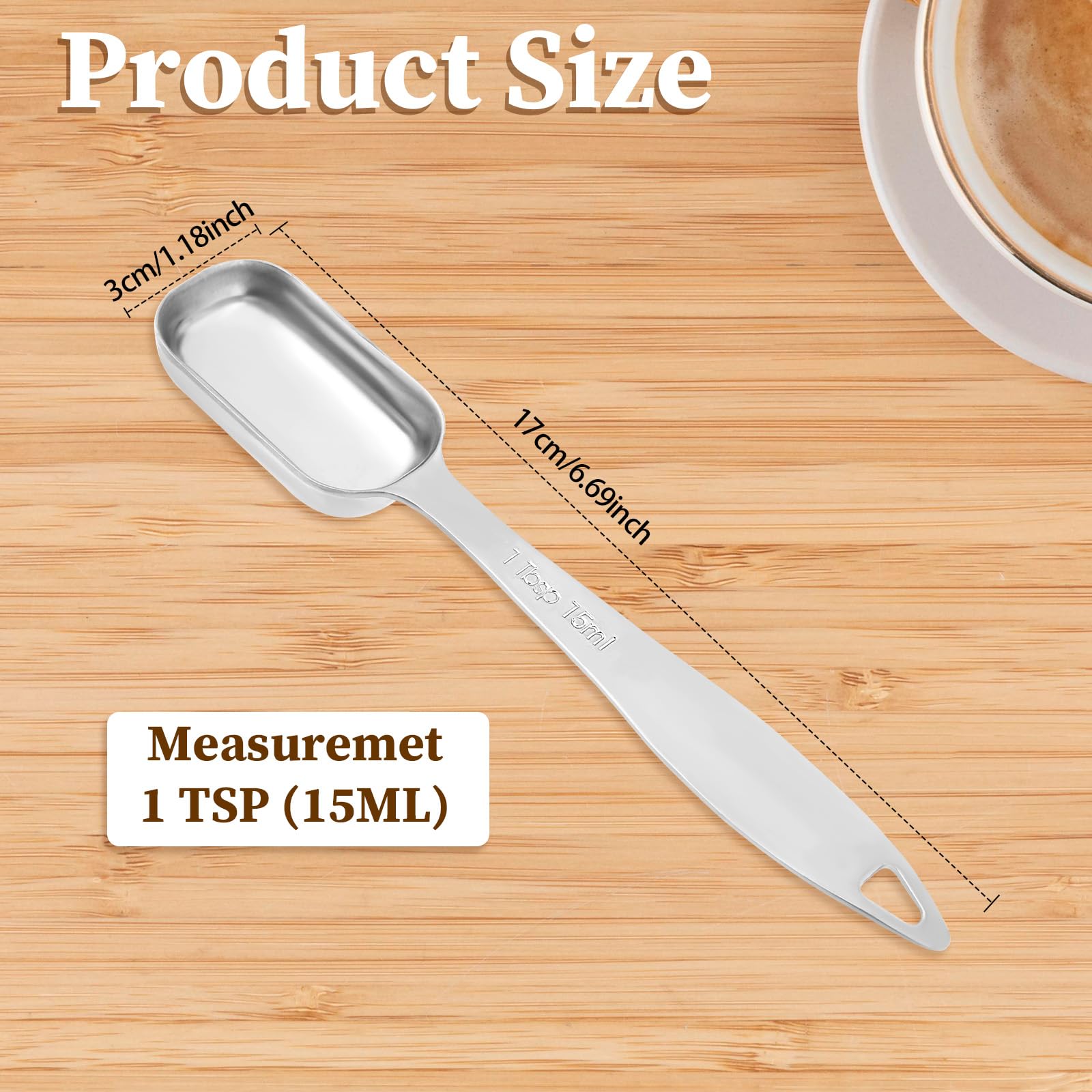 Cucina di Modena Messbecher: 2er-Set Edelstahl-Kännchen zum Aufschäumen, mit Mess-Skala, 580 ml (Sahnekannen Und passt problemlos in das kleinste Glas, perfekt für diejenigen, die gerne ihren eigenen Kaffee zur Arbeit oder auf Reisen mitbringen, kann auch für Milchpulver, Tee, Haferflocken und Haferflocken verwendet werden 【Rechteckiges Design】Anders als gewöhnliche Messlöffel, ist das rechteckige Design stabiler, um sicherzustellen, dass die Gewürze nicht auslaufen. Der längere Griff und die schmale Form ermöglichen die Verwendung mit allen tiefen oder flachen Gewürzgläsern. Espresso Dosierlöffel Hochleistungs Edelstahl Kaffee Messlöffel Mini Esslöffel Schaufeln Für Pulver Te The Perfect Scoop Es ist ein praktisches Küchenutensil und Zubehör 【Zuverlässiges Material】Der Edelstahl-Messlöffel ist aus hochwertigem Edelstahl, gut verarbeitet, robust und langlebig, nicht leicht zu knacken, zu rosten oder zu verformen. Genaue Messung: Es kann genau messen, einschließlich Kaffee, Tee, Zucker, Mehl, Gewürze usw.