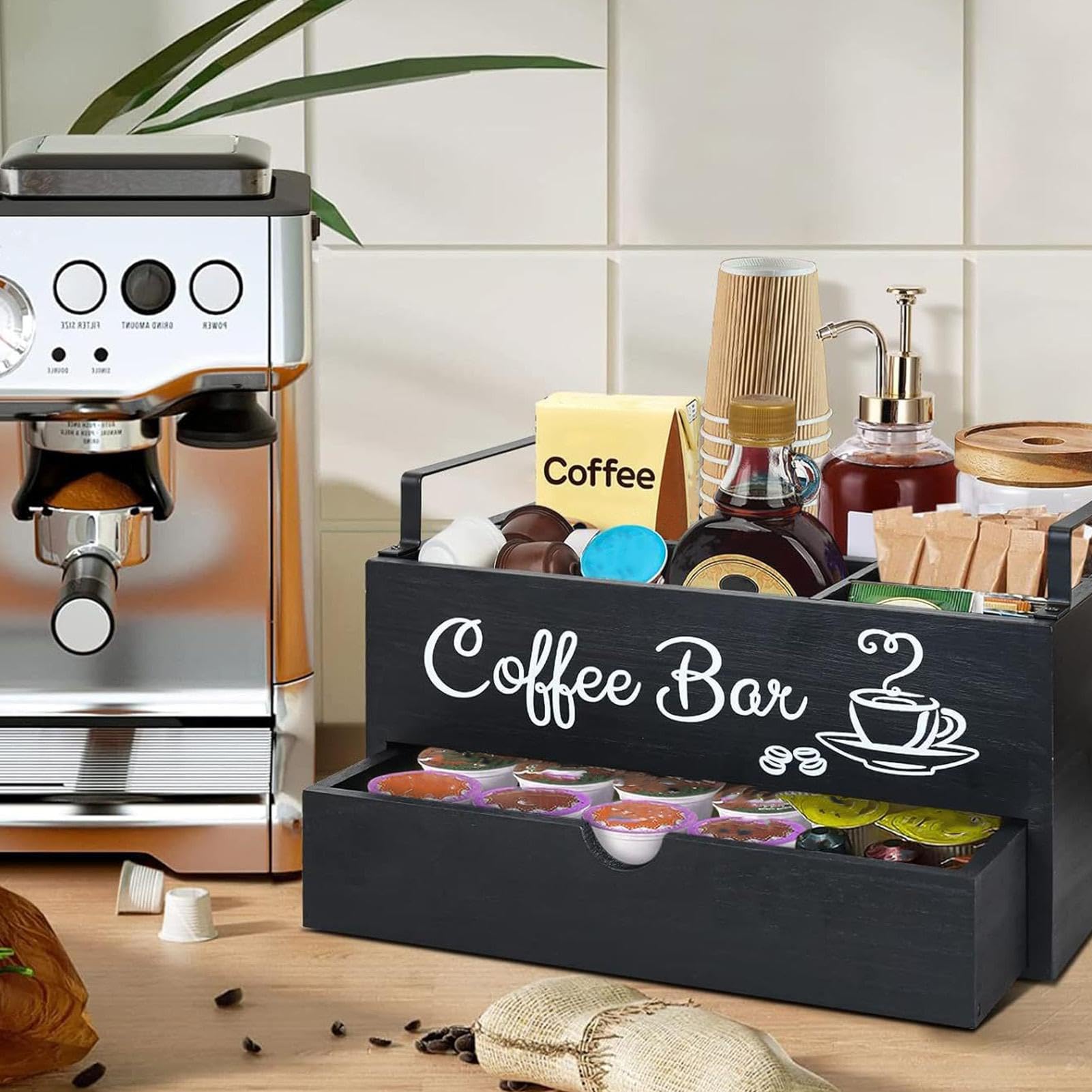 Kaffee Bar 2 Count Kaffeestation Organizer Kaffeetassen Halter Aufbewahrungskorb Coffee Bar Könnte beinhalten: Holz-Kaffeestation mit Tamper, Siebträger, Bürste und einem kleinen Holzständer. Personalisierte hölzerne Kaffee-Tamp-Station, Espresso... Acshio Kaffeestation Organizer für Arbeitsplatte, Holz-Kaffeekapsel-Halter, Aufbewahrungskorb mit Schublade, Kaffee-Gewürz-Zubehör, Caddy Organizer für Kaffeepads, Sirup, Tassen, Rührer Hochwertiges Material: Der Kaffeebar-Organizer ist aus natürlichem Holz mit glatter Oberfläche, die leicht und langlebig ist, geeignet für eine lange und dauerhafte Nutzung. Vielseitige Aufbewahrungslösung: Der Acshio Kaffee-Zubehörbehälter ist perfekt für die Aufbewahrung von Tassen, Deckeln, Kaffeesirup, Kaffeepads, Teebeuteln, Strohhalmen und Rührstäbchen, um sicherzustellen, dass alle Ihre Kaffee-Utensilien an einem praktischen Ort aufbewahrt werden Kaffeestation Organizer Kaffeepadhalter Kaffeebar Zubehör 2 Kaffee-Bar-Dekor: Mit einem eleganten Design kann der Kaffeekapselhalter aus Holz auf jeder Arbeitsplatte, Schrank oder Tischoberfläche platziert werden, verleiht Ihrem Zuhause ein stilvolles Gefühl und lässt Ihre Kaffeebar toll aussehen. Breiter Anwendungsbereich: Dieser Kaffee-Gewürzbehälter ist ideal für den Einsatz auf Küchentheke, Schreibtisch, Kaffeebar und mehr, ermöglicht es, Kaffee oder Tee nach Bedarf leicht zu organisieren und aufzufüllen.