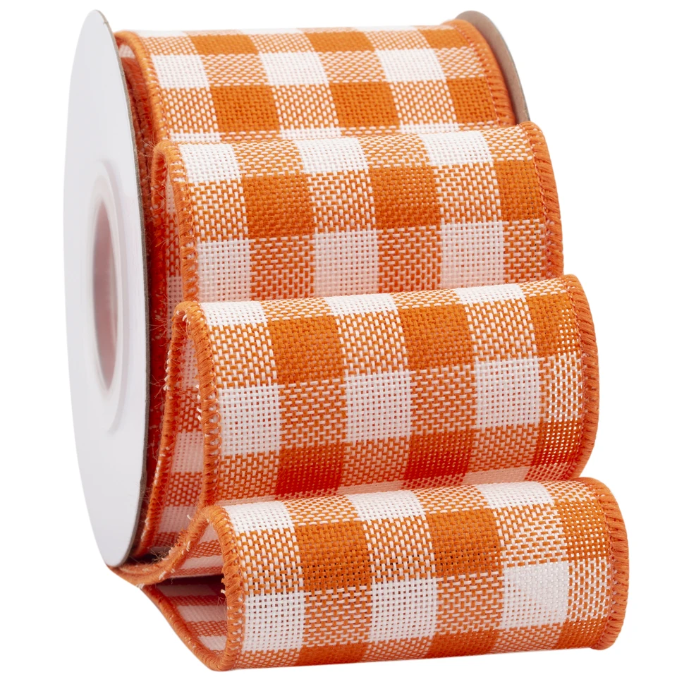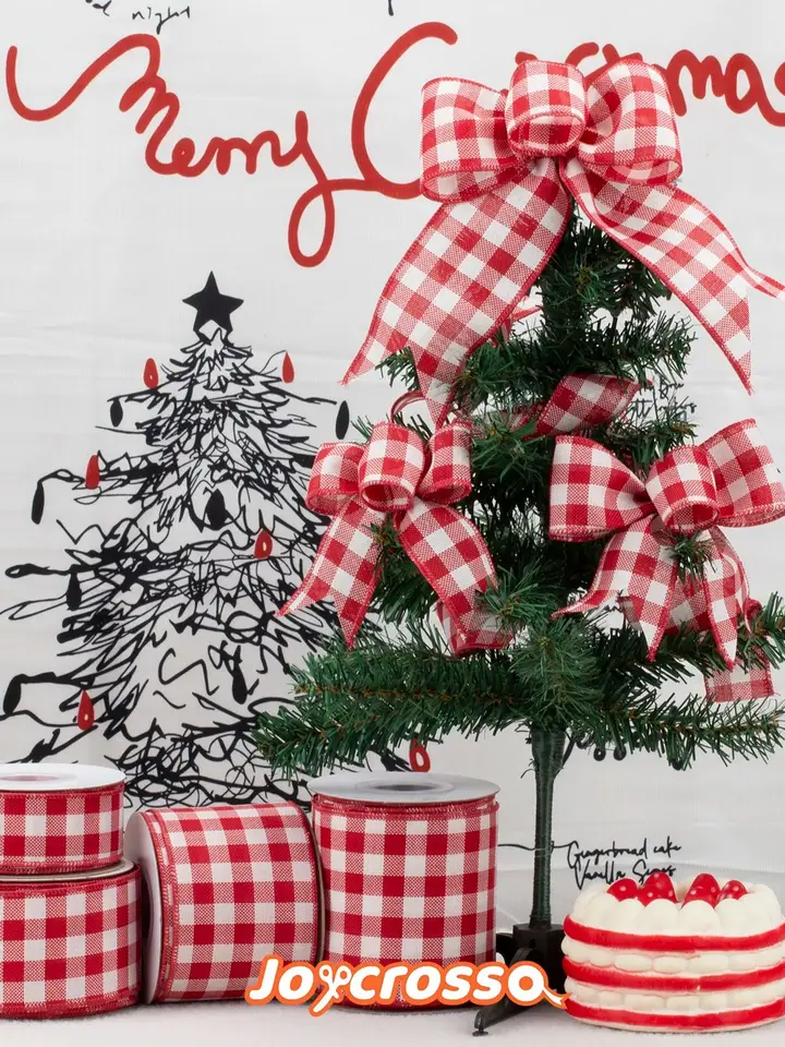 Whaline 2 Rollen Kariertes Band Mit Drahtrand, Weihnachtsbüffel