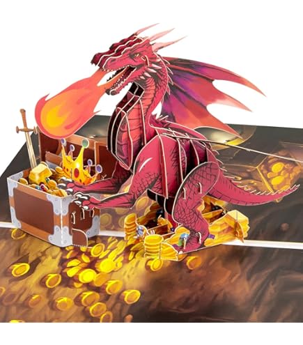 Hierein Geburtstagskarte Pop Up, Drache Und Schatzkiste Pop Up Karte Geburtstag Mit Umschlag, 3D Personalisiert Geburtstagskarte Mann Für Junge Kinder Familie Freund, Dragon Fire Grußkarten