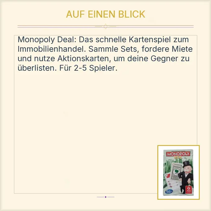 【Leicht zu tragen】Mit seinen maßgefittierten Maßen von 9 x 7 x 4 cm passt es perfekt in jede Tasche, ob Sie nun bei einem Kartenspiel oder Brettspiel unterwegs sind. Funktionen: 1., Unsere Karten sind mit einer glatten Oberfläche versehen, die ein angenehmes Spielen garantiert., 2., Mit unseren beiden verschiedenen Stilen haben Sie immer die richtige Wahl für jede Situation., 3., Kartenspiele kann trainieren die intellektuelle Entwicklung und die praktischen Fähigkeiten von Kindern., 4., Die kartenspiele Maße von 9 x 7 x 4 cm machen das Spiel bequem handhabbar und ideal fürs Spielen., 5., Die Spieler kaufen, verkaufen, träumen und planen ihren Weg zum Reichtum mit dem Brettspiel. Ob Sie nun ein Kartenspiel oder ein Gesellschaftsspiel bevorzugen, unser Spiel ist perfekt geeignet, um Freunde und Familie zu unterhalten. Skyjo Kartenspiel Die Eiskönigin Kartenspiel, Frozen Gesellschaftspiel Und Familienspiele, Die Eiskönigin Uno Kartenspiel GREEN DEAL Kartenspiel kaufen | Hanf im Glück Das deal kartenspiel aus stabiles papier, das sich nicht leicht verformt, langlebig und recycelbar. Es eignet sich perfekt für Spieleabende, Partys und Indoor-Veranstaltungen. Spezifikationen: Material: Papier Größe: 9 x 7 x 4 cm Paket inklusive: 2 x Kartenspiele Ob Sie nun ein Kartenspiel oder ein Brettspiel spielen möchten, unser Spiel ist immer parat. 【Hochwertige Materialien】Unser Kartenspiel ist aus hochwertigem Papier gefertigt, was ihm eine solide und langanhaltende Qualität verleiht. Monopoly DEAL Pocket Kartenspiel kaufen | Neu & Gebraucht Monopoly Deal Kartenspiel | Spiel-Empfehlung