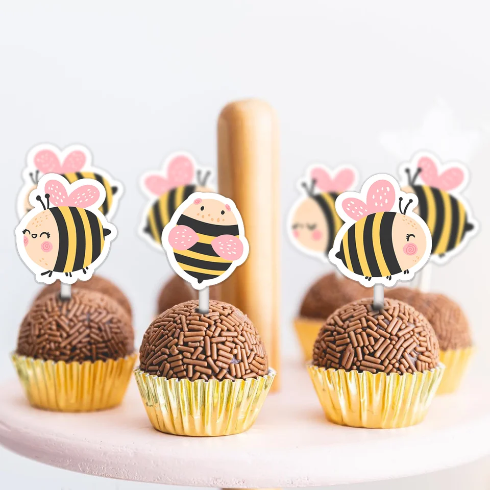 20 Stücke Honigbiene Cupcake Topper Rosa Karton Papier Topper Für Kinr Glückliche Biene Tag Geburtstag Party DIY Kuchen Koration Lieferungen