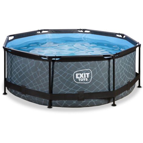 EXIT Toys Stone Pool - ø360x76cm - Großer, Runder Rahmenpool Mit Kartuschenfilterpumpe - Leicht Zugänglich - Für Kleinkinder Geeignet - Starker Rahmen - Einzigartiges Design - Grau : EXIT Toys