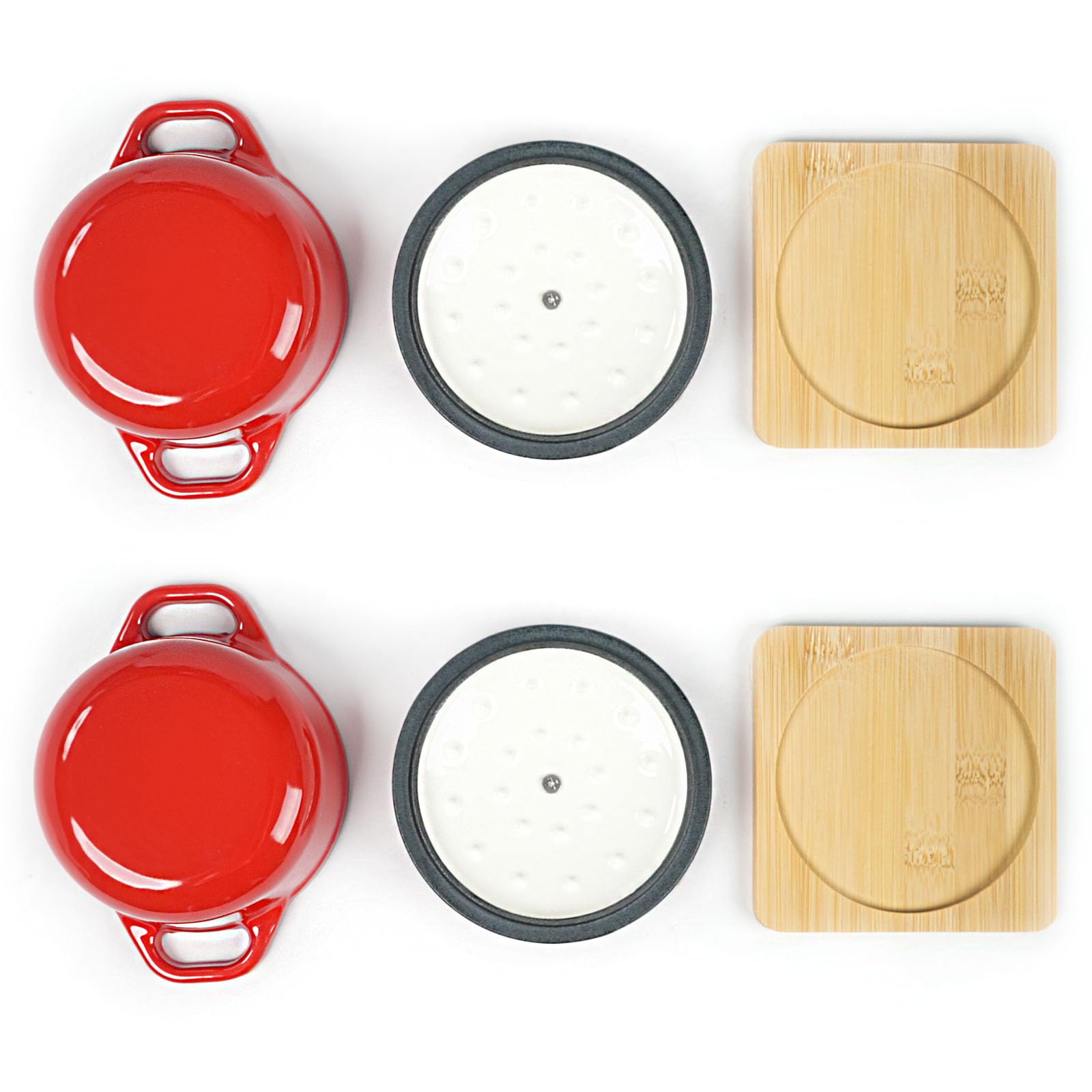 HAWOK Emaillierter Gusseisen-Mini-Kasserolle Mit Bambus Display Regal