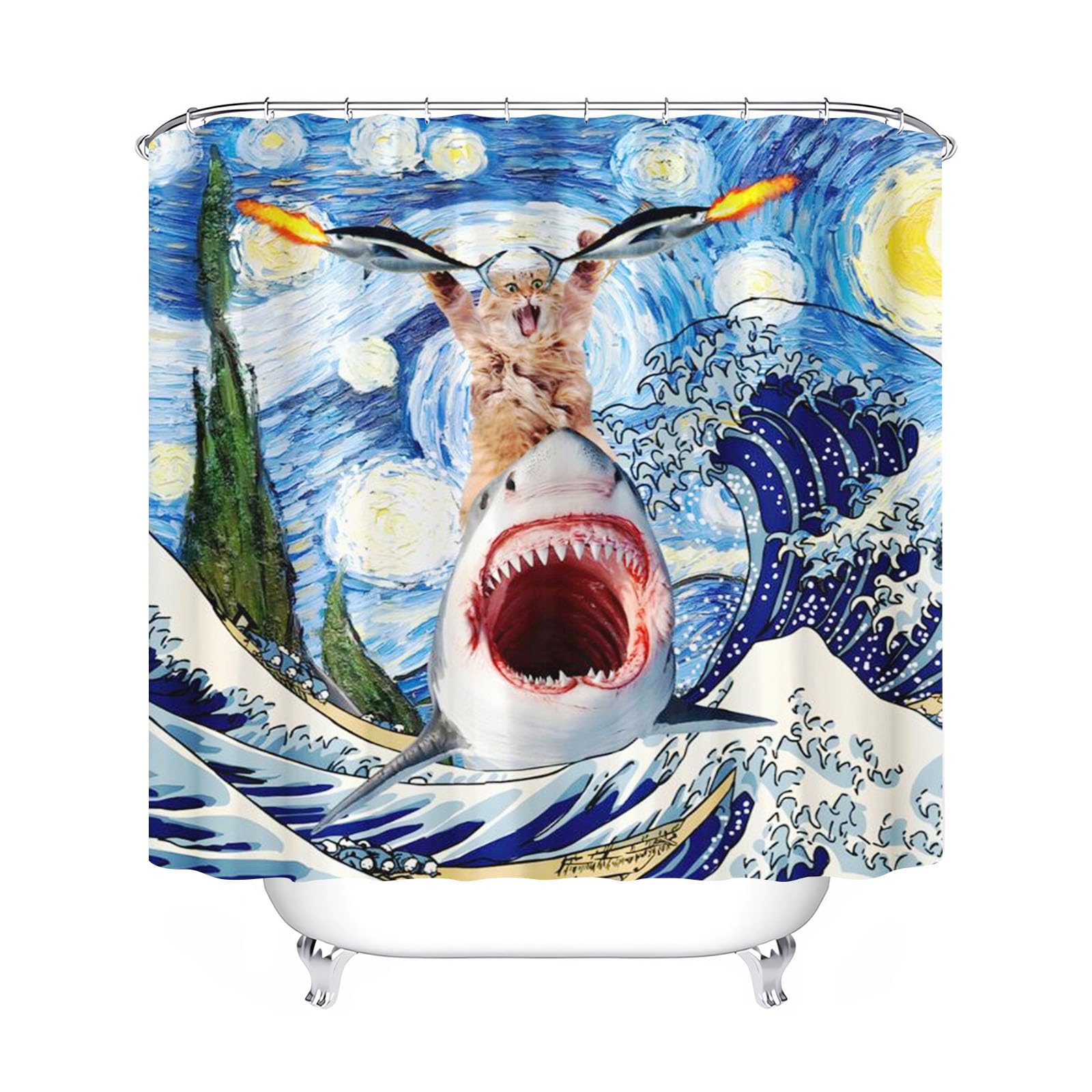 ASDCXZ Duschvorhang Lustig Katze 180x200 Cm, Lustig Traurigkeit Katze Meeresschildkröte Kind Waschbar Duschvorhänge Wasserdicht Polyester Textil Duschvorhang Für Badewanne Mit 12 Duschvorhang Hake
