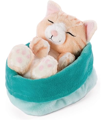 NICI Kuscheltier Katze Grau 12cm Schlafend Im Körbchen Rosa GREEN
