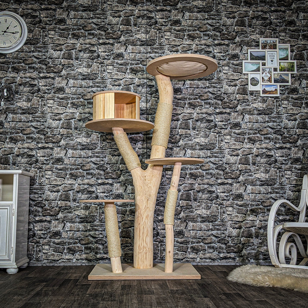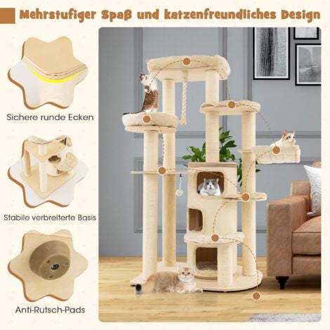 Abgesehen davon, mit klaren Illustrationen und allen in der Bedienungsanleitung nummerierten Teilen, ist der Aufbau dieses Katzenturms einfach. Hergestellt aus 1,5 cm dicken MDF-Platten, robust und langlebig genug. Darüber hinaus besteht es aus natürlichen und sicheren Sisalseilen, die eine langfristige Nutzung gewährleisten. PETSITE Kratzbaum aus Holz, 163,8 cm hoch, moderner Katzenturm mit 2 Höhlen, Sitzstange Oben und Kratzbäumen, großes Aktivitätszentrum für Indoor-Katzen 14 Besonderheiten: Die obere Sitzstange mit verdicktem Kissen bietet ein angenehmes Nickerchenerlebnis. Darüber hinaus können die Kissen entfernt und gewaschen werden, um sie sauber und hygienisch zu halten. Es gibt auch zwei amüsante baumelnde Fellbälle und einen zusätzlichen Federball, um Sie zu unterhalten, wenn Sie keine Zeit haben, mit Ihrem entzückenden Kätzchen zu spielen. PRODUKTBESCHREIBUNG ANGABEN ZU DEN MAßEN:Höhe - ca.163 cmBreite - ca.110 cmTiefe - ca.70 cmBodenplatte - ca.80 cm x 60 cm Multifunktionales Katzen-Aktivitätszentrum: Dieses 6-lagige Katzen-Aktivitätszentrum verfügt über zwei luxuriöse Höhlen mit weichen Kissen, eine gemütliche Sitzstange und eine bequeme Sprungplattform, die den Instinkt der Erholung, Erkundung und des Spielens befriedigt. Kratzbaum Katze Kratzbaum Für Große Katzen 180 Cm Hoch, Katzenbaum Mit 2 Höhlen, 3 Betten, Decken & M��bel F��r Katzen Die weichen Plüschkissen sind sicher für Kätzchen, um ihr Gesicht zu reiben und sich darauf zu nageln. YITAHOME 153 cm hoher Kaktus-Kratzbaumturm mit Selbstpflegebürste, süßer Katzenkletterturm für Die solide und breite Basis bietet starke Unterstützung, und nicht leicht zu wackeln. Und die obere Sitzstange ermöglicht es Ihrer Katze, sich zu sonnen, während sie die schöne Landschaft draußen bewundert. 【Premium Kratzbäume】 Der Kätzchenturm ist mit vollständig bedeckten Kratzbäumen entworfen, die nicht nur Kätzchen ermöglichen, Krallen zu schleifen, sondern auch Ihre Möbel vor Zerstörung zu schützen. Die Anti-Rutsch-Fußpolster sorgen für mehr Stabilität und schützen Ihren Boden vor Kratzern., Produktmerkmale: Farbe: Naturfarben., Material: MDF, Sisalseil. Moderner Kratzbaum THE ONE - Die moderne Katze