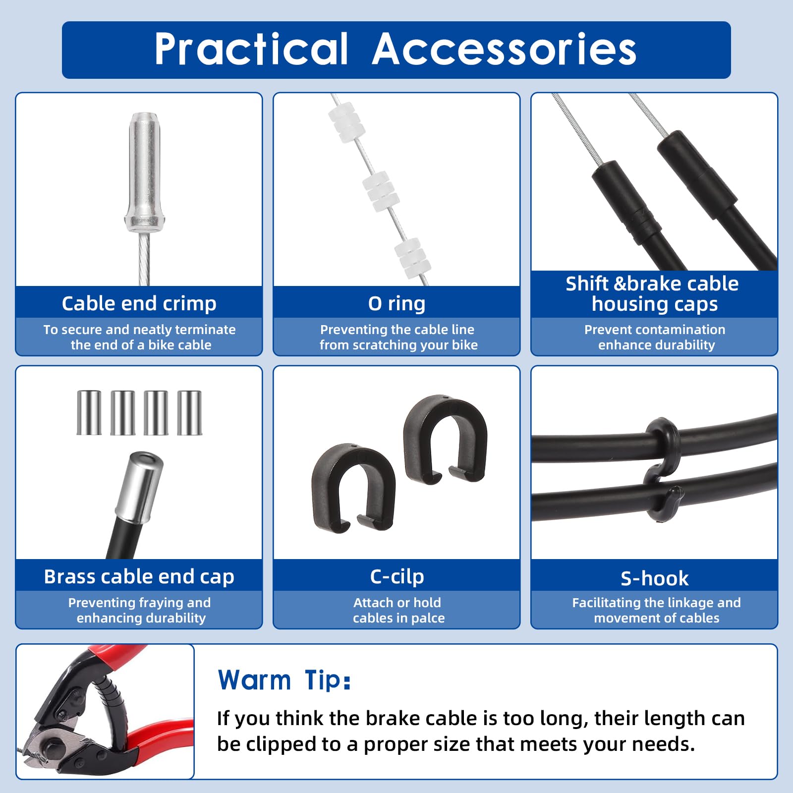 Keadic 68 Pcs Universal Bicycle Shifter Cable Housing Set Contains Cable Cutter, Bike Shift Wire Brake Cable, Variable Speed Plieline, End Caps, Line Pipe Buckle For Mountain Road Bike Repair