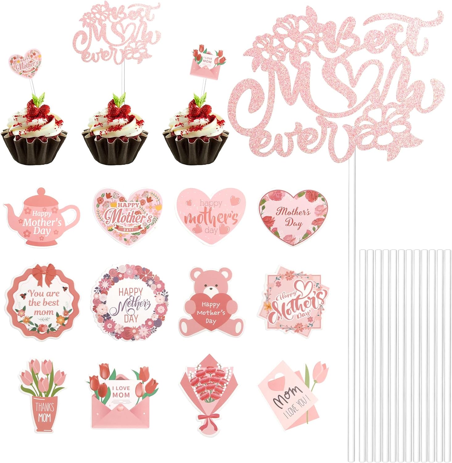 Keaziu 24 Stück Happy Mother's Day Cupcake Topper Best Mom Ever