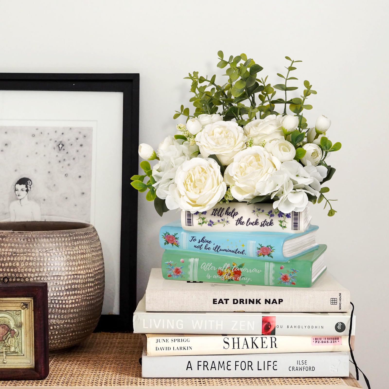 Keramik-Buchvase Für Blumen, Heimdekoration, Niedlicher Bücherregal-Akzent, Liebesgeschenke, Einzigartige Dekoration Für Zuhause/Schlafzimmer/Büro (klein – Geheimer Garten