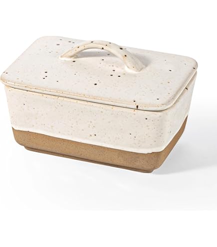 Luftdichter Deckel bewahrt die Frische, während der handliche Griff einen reibungslosen Zugang gewährleistet. Mehrzweck-Geschenk für Butter-Enthusiasten – verschönern Sie Brunch-Aufstriche, Urlaubstische oder Küchendekoration mit dieser stilvollen Butterdose mit Deckel. Kompakte Größe und praktisches Design – Maße (L x B x H): 11,7 x 7,6 cm (exkl. Handlicher Griff, stabiler Standfuß. Spülmaschinenfest & leicht zu reinigen - Nicht poröse Keramikoberfläche erfordert minimalen Aufwand zu reinigen. Ideal für die Präsentation von Butter als funktionales Dekor. Elegant verpackt, ist es ein herzliches Geschenk für Käse-/Butterliebhaber oder jeden, der Wert auf europäische Vintage-Handwerkskunst legt Airtight lid preserves freshness, while easy-grip handle ensures smooth access. Perfect for displaying 1 stick of butter as functional decor. Pairs well with modern or minimalist tableware styles. Top handle simplifies lid removal, while sturdy base prevents tipping Französische Butterdose NUTRIUPS Keramik-Butterdose Mit Deckel Für Arbeitsplatte, Europäischer Butterdose Vintage Mikrowellengeeignet, gefriergeeignet Nicht poröse Oberfläche lässt sich leicht reinigen. Perfekt für die Präsentation von 1 Stück Butter als funktionales Dekor Zuckerdosen und Butterdosen - Küchenzubehör aus Edelstahl Passend zu modernen Küchen Praktisches Geschenk für Feinschmecker Europäische Vintage-Butterdose mit Deckel - Premium-Keramik-Konstruktion liefert zeitlosen rustikalen Charme für Arbeitsplatten. Luftdichter Deckel bewahrt die Frische, während der handliche Griff einen reibungslosen Zugang gewährleistet