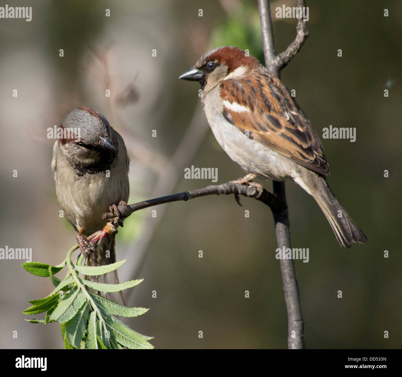 Keramik Figur - Spatzen Auf Ast - Vogel