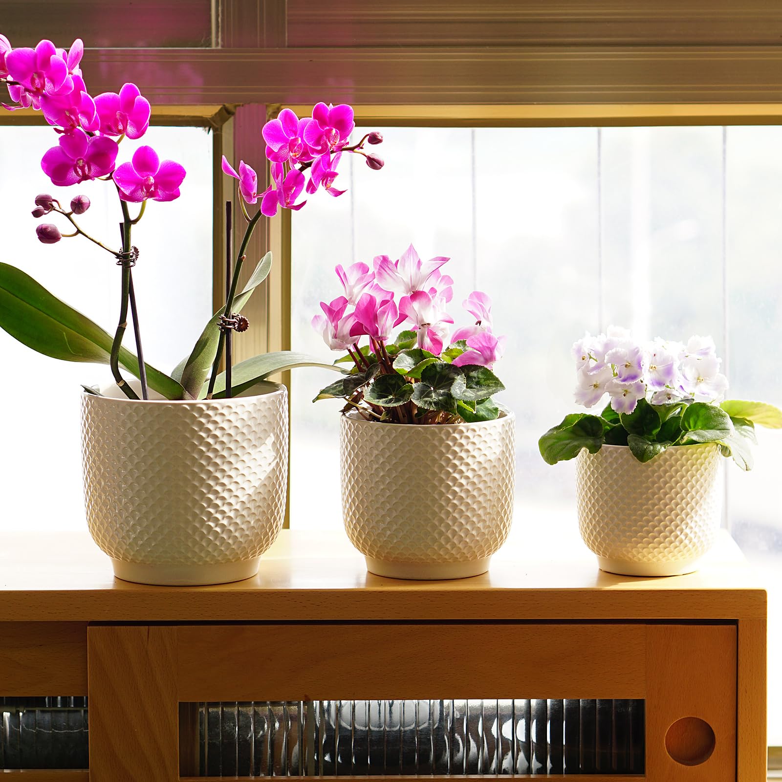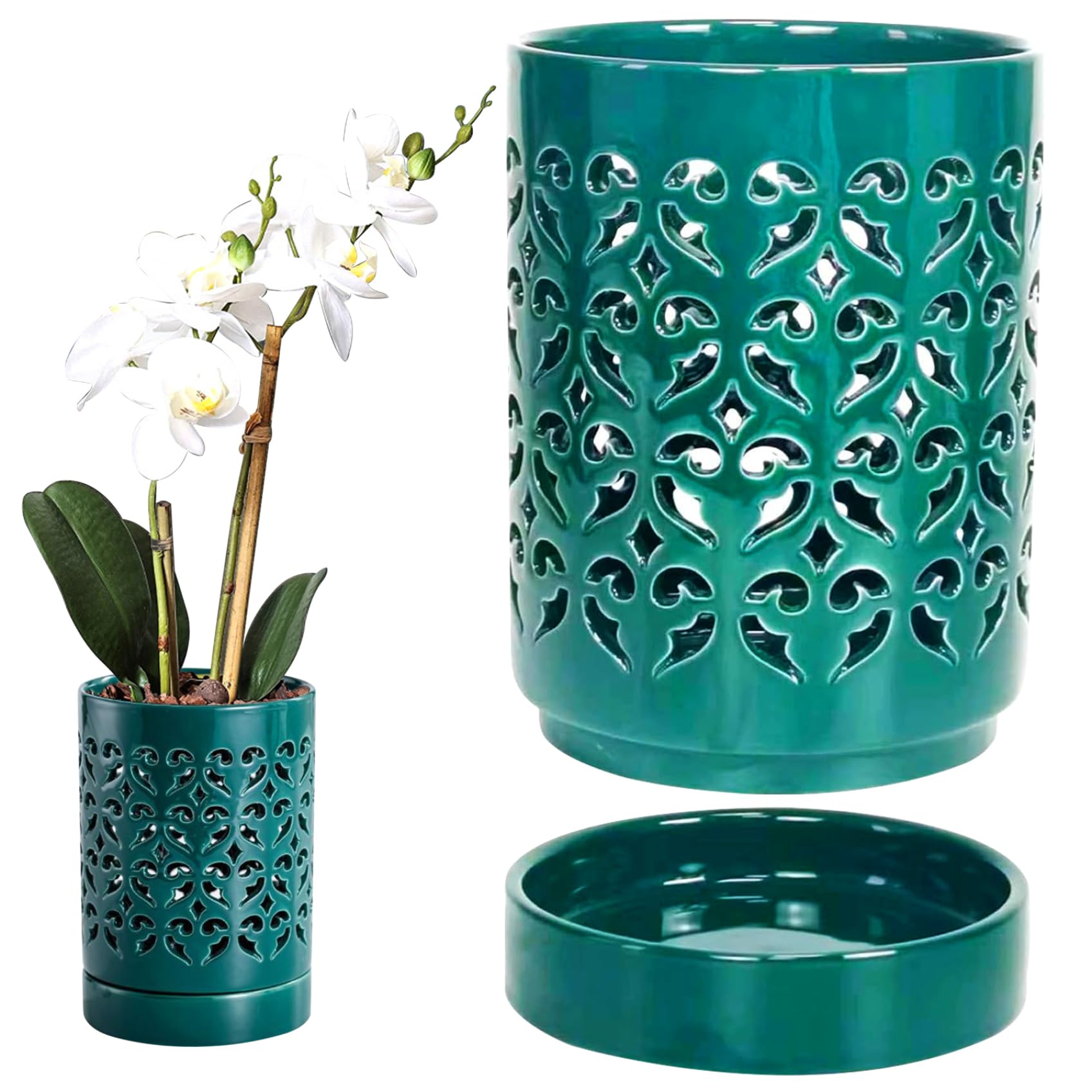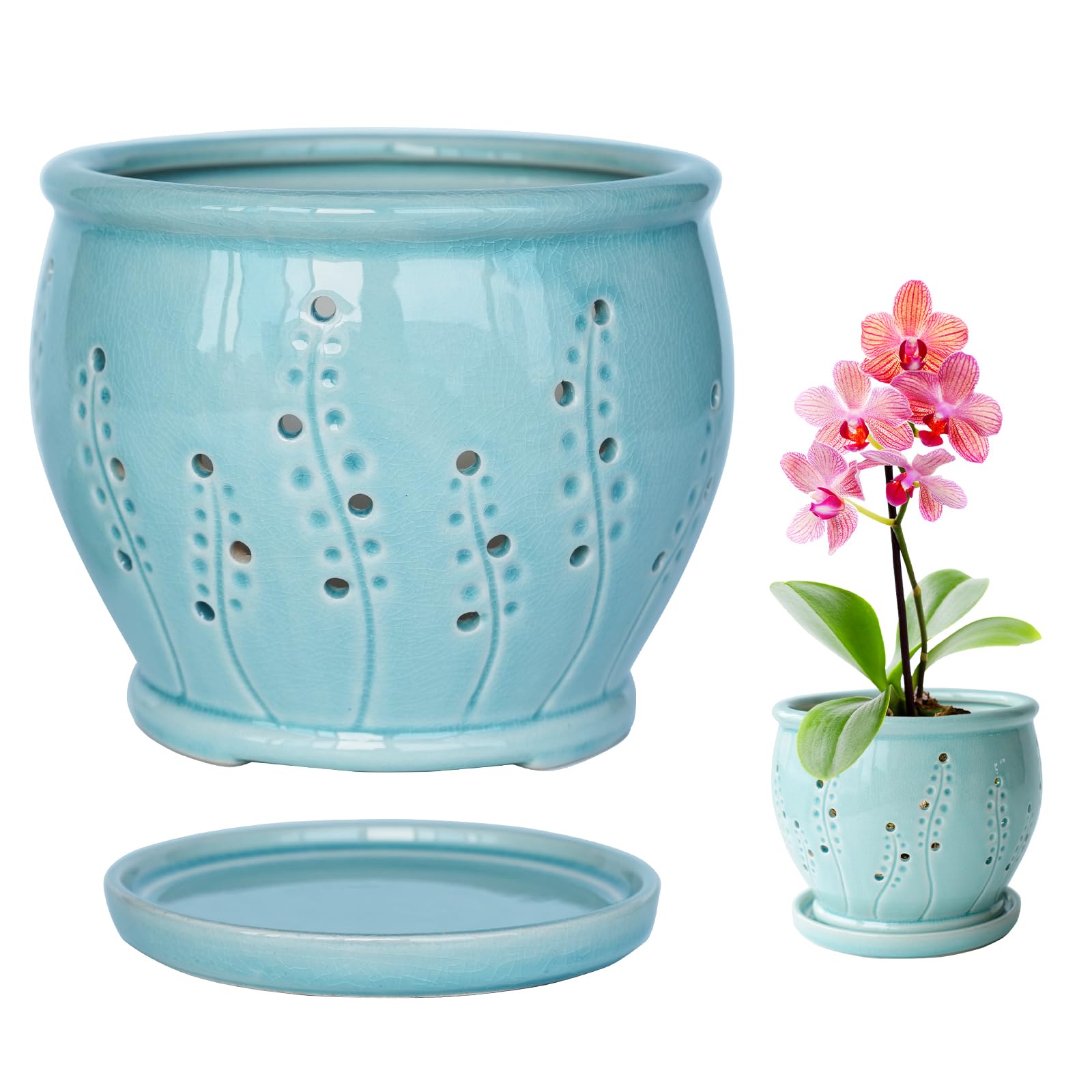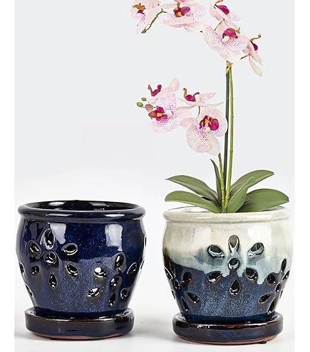 Yaoliucp 4 Zoll Keramik Orchideentöpfe Mit Löchern Und Untertassen