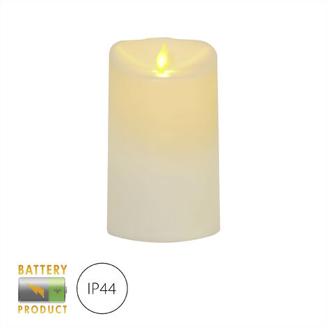 STAR TRADING LED-Kerze Stumpenkerze Echtwachs Mechanisch Bewegte Flamme Timer H: 15cm Creme (1-tlg
