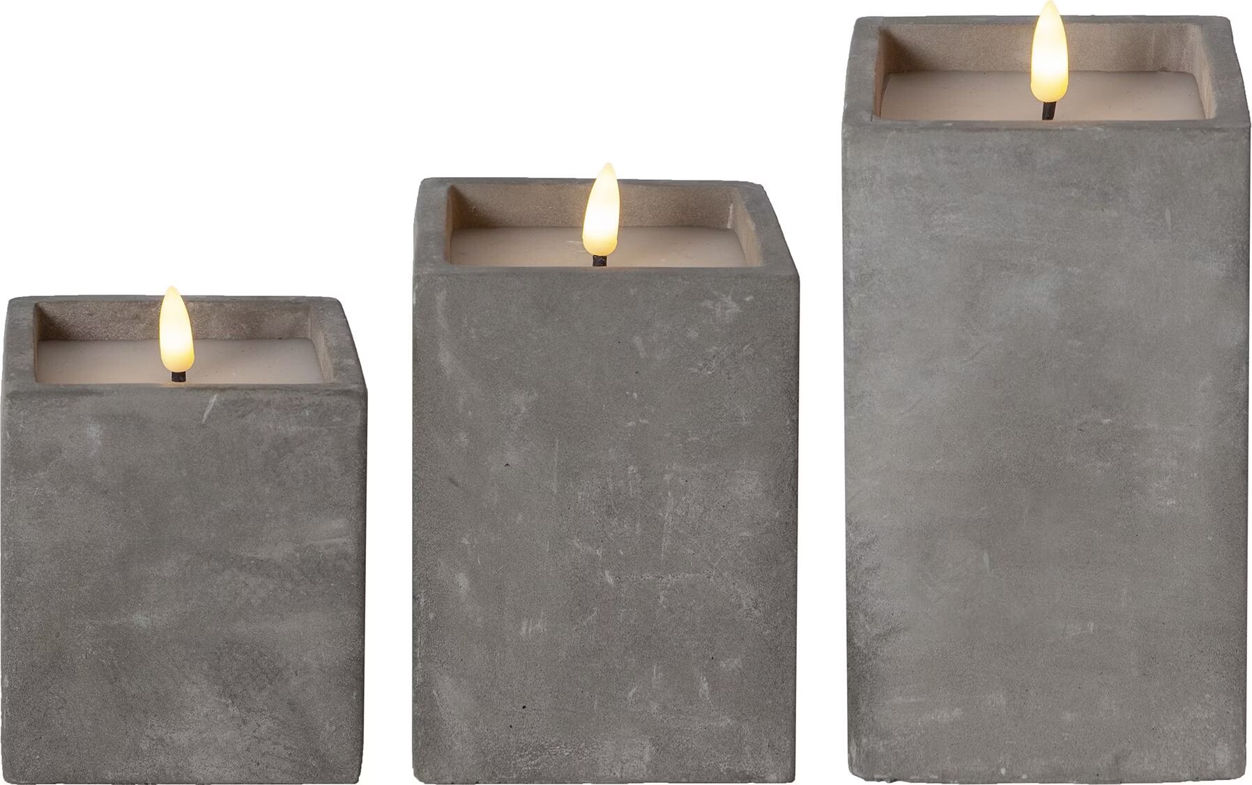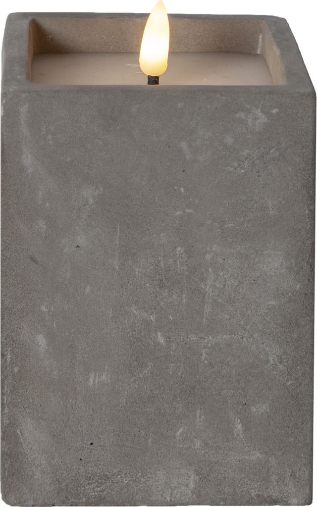 IB Laursen Kerzenhalter Stumpenkerze Beton 5,5 cm Die LED Stumpenkerze „Beton Quader verbindet also modernes, zeitloses Design mit realistischer Flammenoptik und praktischer Handhabung. Sie ist ein dekoratives Highlight für jeden Raum, sorgt für stimmungsvolles Licht ohne offenes Feuer und bietet dank Timerfunktion maximalen Komfort Die LED Stumpenkerze ist durch das trendige Design ein ganz besondere Blickfang und ein dekoratives Accessoire für Ihr Zuhause. Durch die praktische Timerfunktion entfällt das tägliche Ein- und Ausschalten. Star Trading LED Stumpenkerze Betonquader mit Timer, 9x9x14,5cm, eckig, batteriebetrieben, Betonoptik, Flackereffekt , LAMPE , Stern Technische Details: - Material: Zement /Beton - Farbe: grau - Echtwachskerze - Farbe der Kerze: weiß - Leucht farbe: warmweiß - Höhe: ca., 14,5cm - Maße: ca. LED Stumpenkerze "Beton Quader" mit Timer, einzeln oder in Sets - quadratisch, batteriebetrieben, Beton-Optik, Flackereffekt - schneller Versand aus Deutschland über 15 Jahre Erfahrung im Onlinehandel kostenlose Beratung durch Fachpersonal online Fachhandel für LED Beleuchtungen und 154986743958 Star Trading LED Stumpenkerze Beton Quader mit Timer, 9x9x14,5cm, quadratisch, batteriebetrieben, Beton-Optik, Flackereffekt Ist die Position „TIMER“ einmal ausgewählt, erstrahlt der angenehme Kerzenschein jeden Tag zur gleichen Zeit für ca., 6 Stunden. Star Trading LED Kerzen Mit Timerfunktion Stumpenkerzen Weiß LED Kerze Mit Timer LED Kerze Mit Timer Led Stumpenkerzen Mit Timer Gedrehte Kerzen 2er Set Deko Kerzen Weiss Led Kerze Flackernde Flamme Elekt 8895220