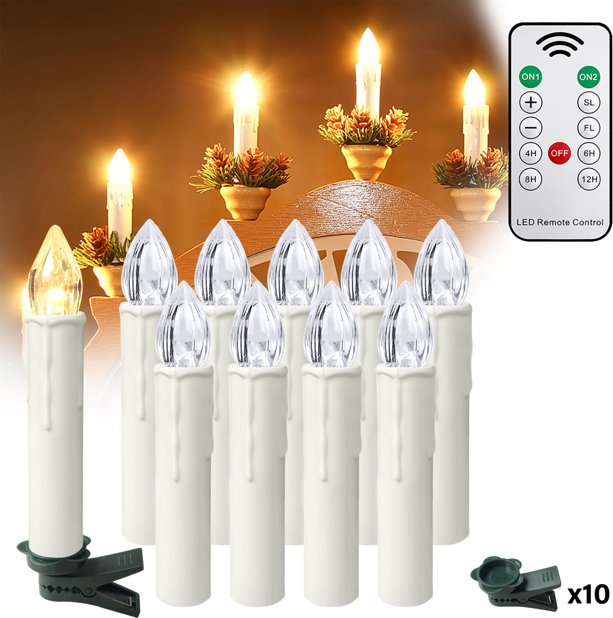 💡 LED Kerzen Mit Fernbedienung - Mit einem kabellosen LED Kerzen mit einer Infrarot-Fernbedienung können Sie eine Vielzahl von Lichteffekten erzielen. 💡 Geeignet für Innen- und Außendekoration - Zum Beispiel Hochzeiten, Restaurantdekorationen, Partys usw. Sobald die Timerfunktion über die Fernbedienung ausgewählt wurde, leuchtet die Kerze für diese Anzahl von Stunden und schaltet sich dann automatisch aus. Beschreibung: LED-Kerzen eignen sich ideal für Innen- und Außendekorationen wie Hochzeiten, Restaurantdekorationen, Feste, z., B. 💡 Mit einem praktischen Clip - Können Sie ganz einfach Weihnachtskerzen an Äste und Zweige befestigen, Machen Sie Ihren Weihnachtsbaum lebendiger 180 Stunden Befestigung: Klemmtechnik (Mit einem praktischen Clip können Sie ganz einfach Weihnachtskerzen an Äste) Batterietyp: AA Mit Fernbedienung : Fernbedienungstyp: Infrarot, mit Batterie CR2025 Material: Kunststoff Standby-Zeit: 100 Tage Reichweite der Fernbedienung: 5-10M Anlaufzeit: Funktion der Fernbedienung: 1., On1 / On2 und Aus-Tasten: Drücken Sie ON1 / ON2 / OFF, um die Kerze zu aktivieren / deaktivieren., 2., Drücken Sie On 1 wird die Kerze flackert, und es wird nach dem kontinuierlichen Pressen On 1 gestoppt warden drei Sekunden., 3., Drücken Sie On 2, die Kerze nicht flackert, dann macht das SL drücken Sie die Kerze flackern, kann es sein,wieder gestoppt, nachdem die Taste On2. Zu Weihnachten, Ostern und anderen Anlässen oder Feiertagen sorgen LED-Kerzen für eine ruhige, romantische und einladende Atmosphäre LED-Kerzen sind batteriebetrieben und sicherer als echte Kerzen. Sie eignen sich perfekt für Familien mit Kindern und Haustieren, als perfekte Christbaum-, Weihnachts-, Erntedank-, Hochzeits- und Partydekoration oder auch für Restaurants Weihnachtsbaum Beleuchtung Led UISEBRT 30er LED Kerzen Mit Fernbedienung Warmweiß Weihnachtskerzen Kabellos Flammenlose Weihnachtsbaum Kerzen Lichterkette Kabellos Mit Timer Und Clips Für Weihnachtsdeko, Party, Hochzeit Christbaumkerzen Led Kabellos die Beleuchtung von Hotels, Bars, Kirchen, Häusern usw. konstantes Licht, Flacker, dimmen, schnell flimmern, langsam flimmern u., s., w. groß Versöhnlich Flüssigkeit weihnachtsbaumkerzen mit fernbedienung Sind vertrau 4 +:Drücken Sie macht das Licht heller 5 -: Drücken Sie macht das Licht dunkler 6., SL: Drücken Sie macht das Licht langsam Flimmern 7., FL: Drücken Sie macht das Licht schnell flackernden 8., 8Std: LED-Kerze 8 Stunden nach dem Einschalten automatisch ausgeschaltet Lieferumfang: 30/40/50 x LED Kerzen & Grüne Clips 1x Fernsteuerung LED-Kerzen UISEBRT 10er Set Kabellose LED Christbaumkerzen mit Batterien, Fernbedienung & Timer, Weihnachtsdeko Kerzenlichter, Baumbeleuchtung für Weihnachten Preis ab 13,49 € (05.12.2025). Jetzt kaufen