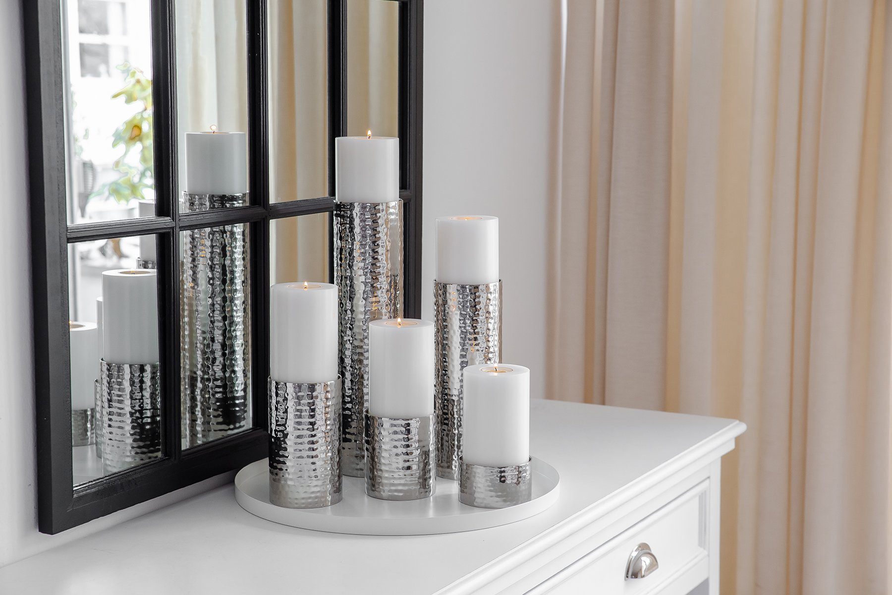 Kerzenleuchter Luca (2er Set) Gehämmerte Silber-Optik | Edzard