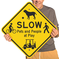 Schild "Slow - Kids And Pets At Play", 25,4 X 25,4 Cm