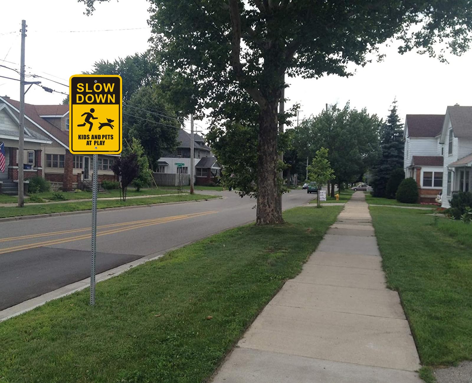 Aluminiumschild 70 x 25 mm inkl. Gravur Graffiti kann gereinigt werden. Für hart verpackten Boden kann ein Hammer verwendet werden. Stabiler Pfahl im Lieferumfang enthalten: Im Gegensatz zu billigeren Schildern verfügen diese Schilder über einen biegsamen Stahlpfahl mit Emaille-Beschichtung. Langsames Schild ----- Vermeiden Sie Unfälle und warnen Sie Fahrer, sich zu verlangsamen mit diesem Schild für Kinder und Haustiere beim Spielen. Befestigungsmaterial ist jetzt sicher mit jedem Kit befestigt. Installation: Einfach in den Boden zu stecken, ohne spezielle Werkzeuge oder anstrengendes Graben erforderlich. SCHILDER HIMMEL 2mm starke Metall Straßen Namen Schilder, Straßenummern Schild "Slow - Kids And Pets At Play", 25,4 X 25,4 Cm Sicherheitsschilder mit Pfahl für die Straße, 91,4 cm große Metallpfähle und 35,6 x 25,4 cm reflektierendes Aluminiumschild, lichtbeständig Robustes Aluminium: Das 25,4 x 25,4 cm große Schild ist aus robustem, 40 mm dickem Aluminium gefertigt und an einem 71,1 cm hohen Pfahl befestigt.
