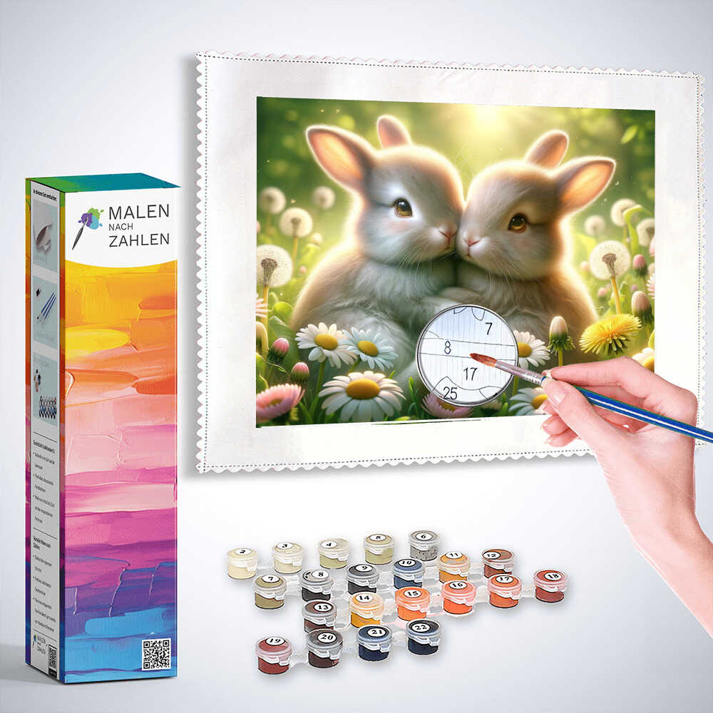 Ravensburger CreArt 27695 - Niedliche Häschen - Malen Nach Zahlen Hase Für Kinder Ab 7 Jahre, Malset Mit Rahmen, Pinsel Und Acrylfarben, Geschenk Für Mädchen Und Jungen