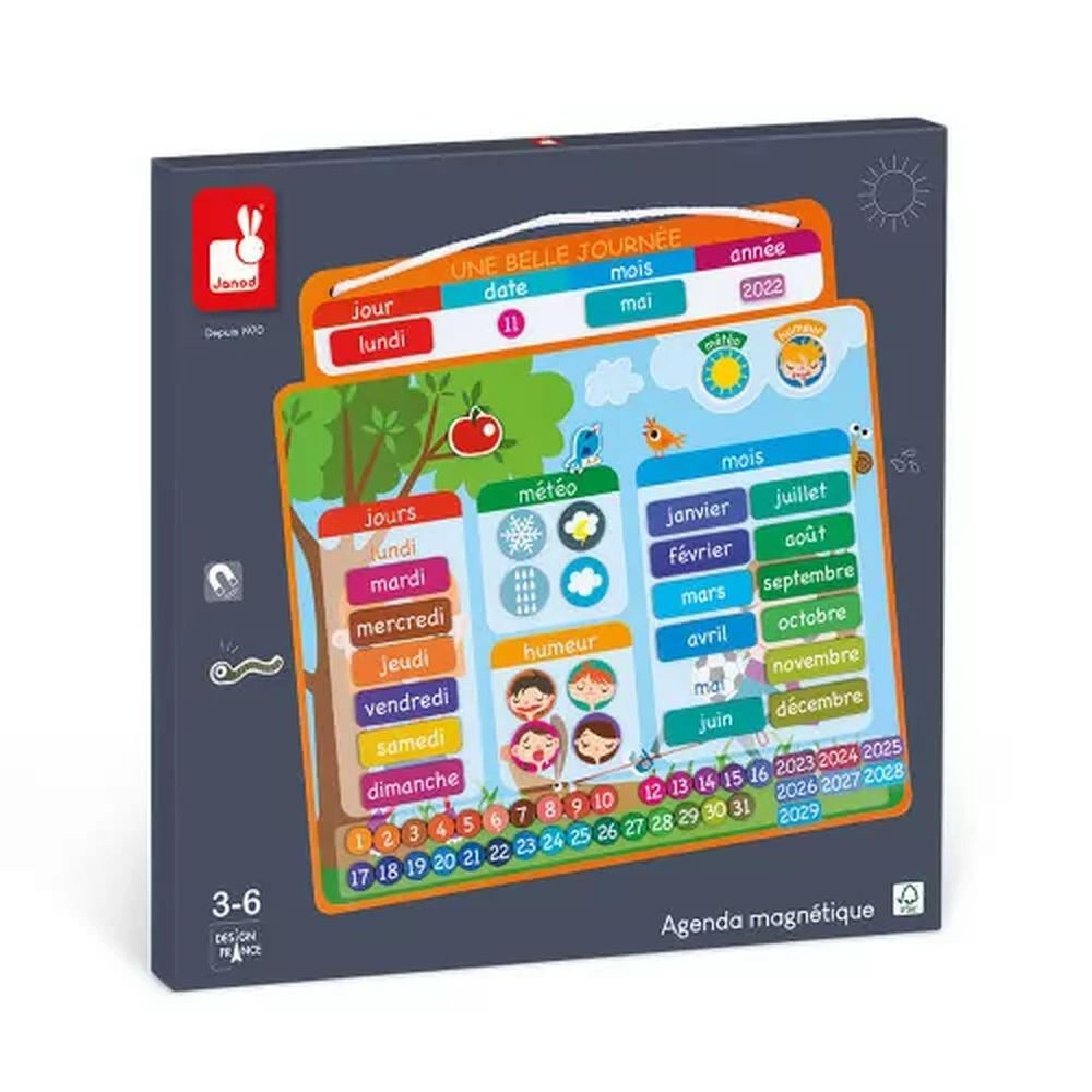 FAMILIENPLANER: Setzen Sie die Wochentagmagnete in die Spalten, dann die Aktivitätsmagnete an den Anfang der Reihen, und organisieren Sie die Woche der Familie mit 5 verschiedenen Tieren mit je 11 Exemplaren. Die Wochentagmagnete (in 6 Sprachen erhältlich) kommen oben in die Spalten und die Aktivitätsmagnete an den Anfang der Reihe. Wochentage Lernen Kinder Wochenplaner Kinder - Montessori Magnettafel Inkl. 208 Magnete Janod Magnetbuch Papierrolle Für Magnet- Und Kreidetafeln : Tafel & Magnete... Wochentage im Kindergarten: Ganz einfach mit Wilma lernen So vergessen sie nicht, wer sie von der Schule abholt oder an welchem Tag sie Sport treiben. Für jeden Tag und jede Aktivität gibt es ein bestimmtes Quadrat, auf dem Ihr Kind einen Tiermagneten platziert, der das Familienmitglied oder die Familienmitglieder darstellt, die an der Aktivität teilnehmen. Schreiben Sie mit dem löschbaren Filzstift auf die untere Tafel einen Vornamen neben jedes Tier und setzen Sie die Tiermagnete auf die Kreuztabelle. Mit diesem magnetischen Organigramm wird die Familienplanung zum Kinderspiel. Organisieren Sie die Woche mit 20 Aktivitätsmagneten (Haushalt, Freizeit, Party ., ., ., ). Sie hilft Ihrem Kind ab 3 Jahre, sich in der Zeit zurechtzufinden, den Begriff der Zeitplanung zu verstehen und die Zeit einzuteilen. Ideal, um Ihr Kind im Alltag zu begleiten und ihm zu helfen, selbstständiger zu werden! Janod-Spiel für Kinder von 3 bis 8 Jahre. Spielzeug, das bis ins Detail ausgearbeitet ist, um spielerisch zu lernen, die Welt zu erkunden, zu träumen und zu teilen. Ordnen Sie jedem Tier in der unteren Tabelle mit dem Filzstift einen Namen zu. Janod - Familienplaner - Magnet-Tafel + 97 Magnete - Wochentage und Organisieren Lernen - Pappspielzeug - Ab 3 Jahre, J05469 Spar-Tips? Preise vergleichen und Marken und Artikel Bewertungen lesen bei DIE MACHT DES SPIELS: Mit spannenden, innovativen Kollektionen begleitet Janod Kinder bei einem tollen Abenteuer: Heranwachsen! Das Spiel bietet Magnete mit alltäglichen Aktivitäten, von Hausarbeit bis Freizeit, nicht zu vergessen Ausflüge und Geburtstage. Enthält 2 Magnet-Tafeln, 1 abwischbaren Filzstift, 20 Aktivitätsmagnete, 55 Magnetfiguren, 42 Wochentag-Sticker.