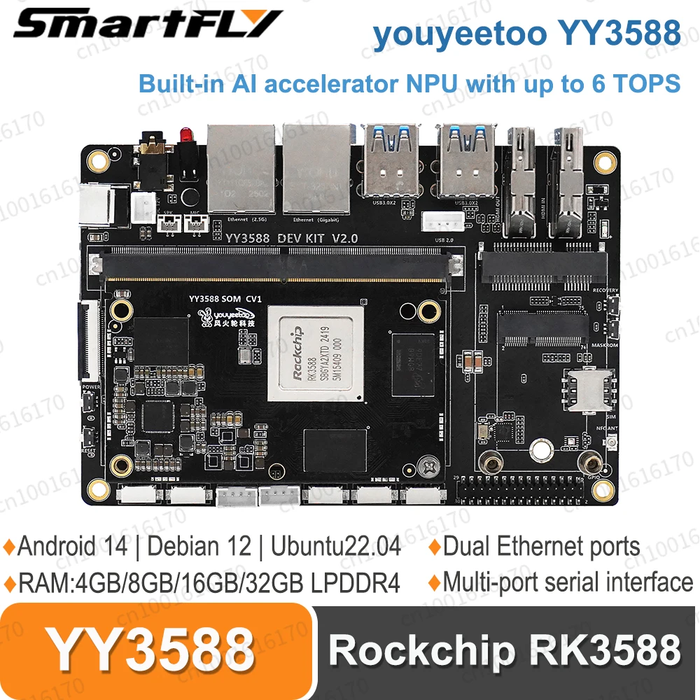 Dies ermöglicht ein maßgeschneidertes Erlebnis und eine effektivere Entwicklung com/YY3568, Sie können SDK, Tutorials, Tech-Dokumente und Entwicklungs-Tools finden, die die Entwicklung einfacher und bequemer machen. mm) kann es sein Wird direkt in verschiedenen intelligenten Produkten verwendet, um die Fertigstellung von Produkten zu erleichtern - Spezifikationen: Soc: Rockchip RK3568 CPU: Quad-Core 64-Bit Cortex-A55, 22 nm Lithographieprozess, Frequenz bis zu 2,0 GHz GPU: ARM G52 2EE Unterstützt OpenGL ES 1., 1/2., 0/3., 2, OpenCL 2., 0, Vulkan 1., 1, Eingebettete Hochleistungs-2D-Beschleunigungs-Hardware NPU: 0., 8Tops@INT8, integrierter Hochleistungs-KI-Beschleuniger RKNN NPU Unterstützt 8M ISP, unterstützt HDR RAM: 2 GB LPDDR4., Speicher: 16 GB eMMC -Betriebssystem/Software- Betriebssystem-Unterstützung Android11, Debian10, OpenHarmony-System. [Wiki] http(s)://wiki., youyeetoo. Für die Versandliste können Sie sich auf die letzte Beschreibung des Titels beziehen (Inhalt in Klammern) oder Sie können uns kontaktieren, indem Sie auf WayPonDev klicken, wenn Sie sich nicht sicher sind. com (#------>@) oder posten Sie Ihre Frage auf http(s)://forum., youyeetoo., com/ Das WayPonDEV Team ist ein erfahrener Anbieter und Designer von Robotik und Open Source IOT Hardware, der sich an Hardware Ingenieure, Heimwerker und interaktive Designer richtet YY3568 Open Source Entwickler Kit Rockchip RK3568 Soc Unterstützt Stromversorgung: 1 x 12 ~ 19 V DC Netzeingangsbuchse (5,5/2,1 mm) -Andere- Größe: 120 mm x 88 mm x 19 mm., Gewicht: 113 g., Betriebstemperatur: -10 ℃ ~ 60 ℃ Schnelle Netzwerkkommunikation: Mit integriertem Dual-adaptivem Gigabit-Ethernet RJ45, 2,4 GHz/5 GHz Dual-Band WiFi 5 (WiFi5, 802., 11a/b/g/n/ac/Protokoll), Bluetooth 5., 0 und 4G LTE-Erweiterung, YY3568 sorgt für schnellere, größere Kapazität und niedrigere Latenz-Netzwerkkommunikation Luckfox Lyra: Entwicklerplatine unterstützt Bildausgabe, kommt mit Rockchip-SoC und in mehreren [Android- und Linux-Betriebssystem-Unterstützung] YY3568 ist kompatibel mit Android 11., 0, Debian 10., 0 und OpenHarmony OS, was Benutzern Optionen und Flexibilität bei der Entwicklung ihrer Projekte bietet Android und Linux OS Unterstützung] YY3568 ist kompatibel mit Android 11.0, Debian 10.0 und OpenHarmony OS, was Benutzern Optionen und Flexibilität bei der Entwicklung ihrer Projekte bietet