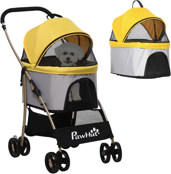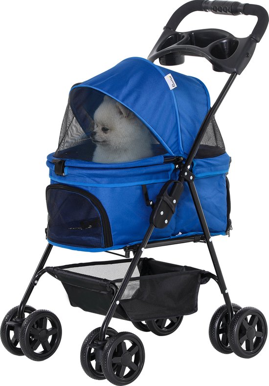 PawHut Hundewagen, Klappbar, Sonnenschutz, Netzfenster, Ablagekorb
