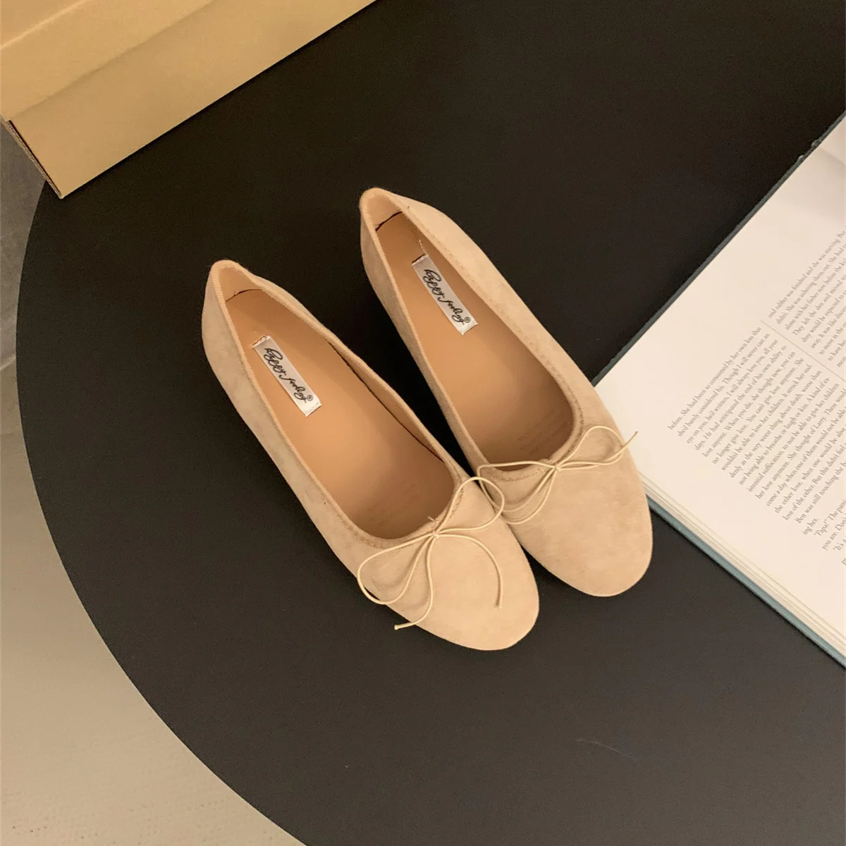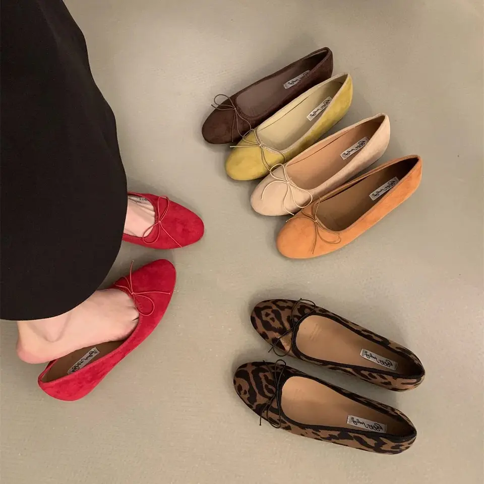 Klassische Ballerinas Aus Leder, Quadratische Zehenpartie, Flache
