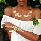 Flash Tattoo Metallic Temporary Einmal Tattoo Klebe Gold Silber Floral Blaetter Armband Kette P1193