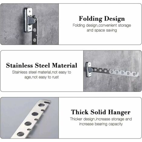 Kleiderlüfter Edelstahl Klappbar, Kleiderhaken Klappbar Wand, Metall Kleiderbügel Platzsparend Wand-Kleiderständer Wandgarderobe Haken Garderobenhaken Für Waschküche Schlafzimmer Badezimmer Balkon