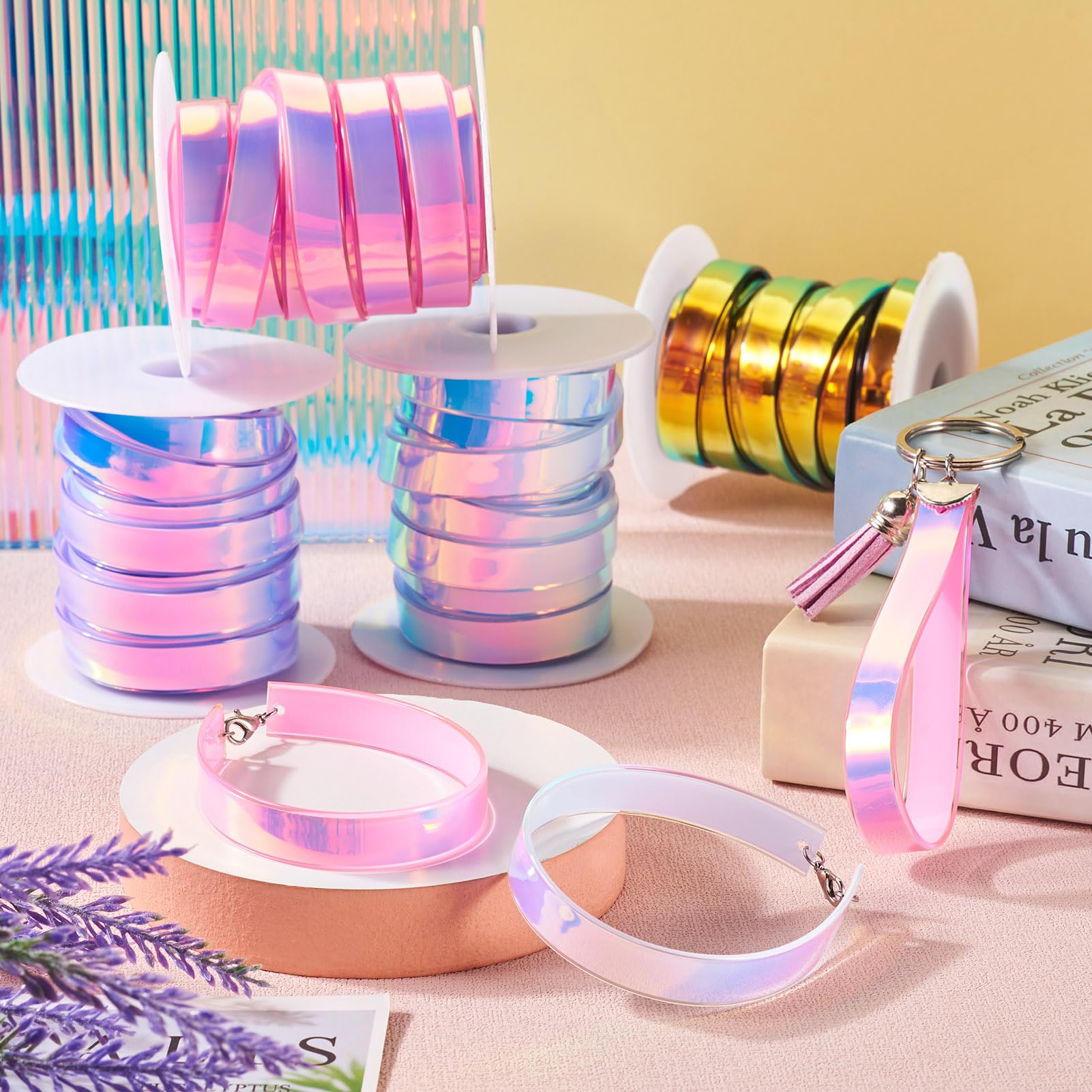 Kleine Geschenkverpackungen, Verziert Mit Rosa Schleife, Metallring Und Ausgestanzten Bluten