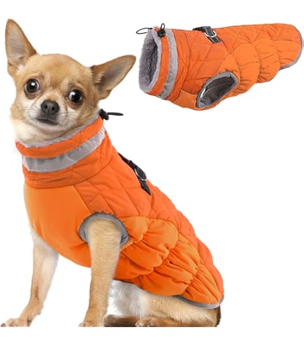 Katzen Jacke Lelepet Hundemantel Winter Jacke Für Kleine Hunde, Wasserdicht Warmer Hunde Winterjacke, Wendbarer Winddicht Hundejacke Mit Klettverschluss, Orange XS Wasserdichter Hundemantel Die dicke Füllung ist leicht und weich, damit Ihr Hund gemütlich und warm bleibt, ohne sich beschwert zu fühlen Das elastische Band sorgt dafür, dass die Hundejacke besser sitzt, und sorgt dafür, dass der kleine Hundemantel beim Gehen und Spielen an Ort und Stelle bleibt Warum bereiten Sie nicht eine Qualitätsjacke für sie vor? Halten Sie Ihren Hund warm und gemütlich, während Sie im Schnee spielen, und Ihr Hund wird auch nach längerem Aufenthalt draußen keine Kälte bekommen. Durchdachtes Design Es gibt ein reflektierendes Band um den Kragen, das eine hohe Sichtbarkeit hat, was es Ihnen erleichtert, Ihr Fellkind nachts oder am nebligen Morgen zu finden. Lelepet Hunde-Wintermantel hält Ihren Hund in der kalten Jahreszeit warm und bequem Lelepet Hundemantel, wendbarer Hunde-Wintermantel fuer kleine 【Verstellbare & sichere Passform】 Diese Hunde-Winterweste nimmt ein magisches Aufkleber-Verschluss-Design an, das leicht an- und auszuziehen ist. XS, S, M, L, XL, 2XL Hundemantel:Diese Wintermäntel für Hunde haben sechs Größen, geeignet für die meisten Hunde, bitte messen Sie Ihren Hund und beziehen Sie sich auf die Lelepet-Größentabelle vor der Bestellung. Die Hundejacke verfügt über ein Loch für die Leine, wodurch es einfach ist, ein Halsband oder Geschirr zu befestigen Jeder Hund ist anders, bitte messen Sie die Größe Ihres Hundes sorgfältig, bevor Sie eine Bestellung aufgeben. Herren Wandern Fleece Weste Jacke gefütterte Daunen Pufferweste Mäntel... Hunde-Pufferjacke Hunde-Daunenjacke Hundepufferweste Wendejacke Hunde-Fleece-Wintermantel/Hundemäntel für mittelgroße Hunde waschbar/Hundemantel/Hundewinterjacke/Hunde-Fleecejacke/Hundewinterkleidung/Hundemantel für kleine Hunde/Hundemantel für mittelgroße Hunde/Hundemantel für große Hunde/gepolsterte Weste/Hundewinterjacke/wasserdichter Hundemantel/Mantel für Hunde/kleiner Hundemantel/große Hundemäntel für männliche Hunde. 【Bequem für Spaziergänge im Freien】Trotz seiner überlegenen Wärme ist der Hundemantel für kleine Hunde ziemlich leicht, sodass Ihr Hund bequem und unbelastet bleibt. Halten Sie Ihren Hund den ganzen Winter warm Wenn Ihr Hund gerne draußen spielen kann, auch im kalten Winter. Legen Sie es auf den Boden, lassen Sie Ihren Hund nach vorne treten, jede Vorderpfote in ein Beinloch, ziehen Sie es über den Rücken, Clipschnalle und Reißverschluss nach hinten.Einfach und praktisch.