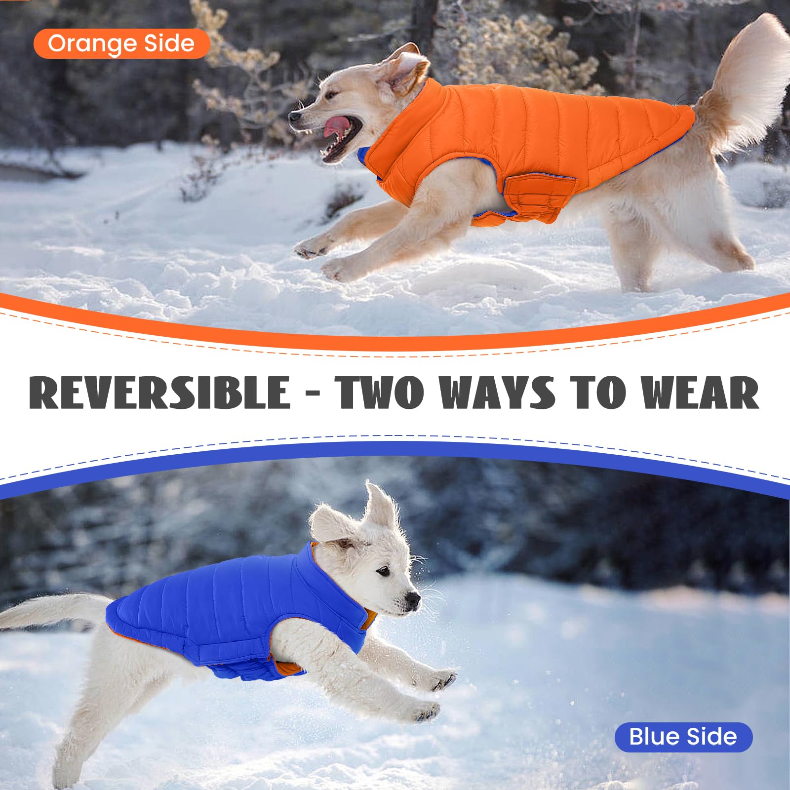 Lelepet Hundemantel Winter Jacke Für Kleine Hunde, Wasserdicht Warmer Hunde Winterjacke, Wendbarer Winddicht Hundejacke Mit Klettverschluss, Orange XS