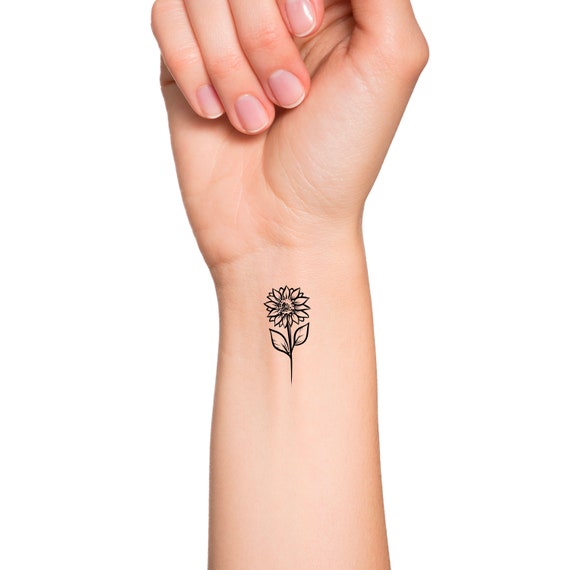 Kleines Aquarell Sonnenblume Temporäres Tattoo (3er Set
