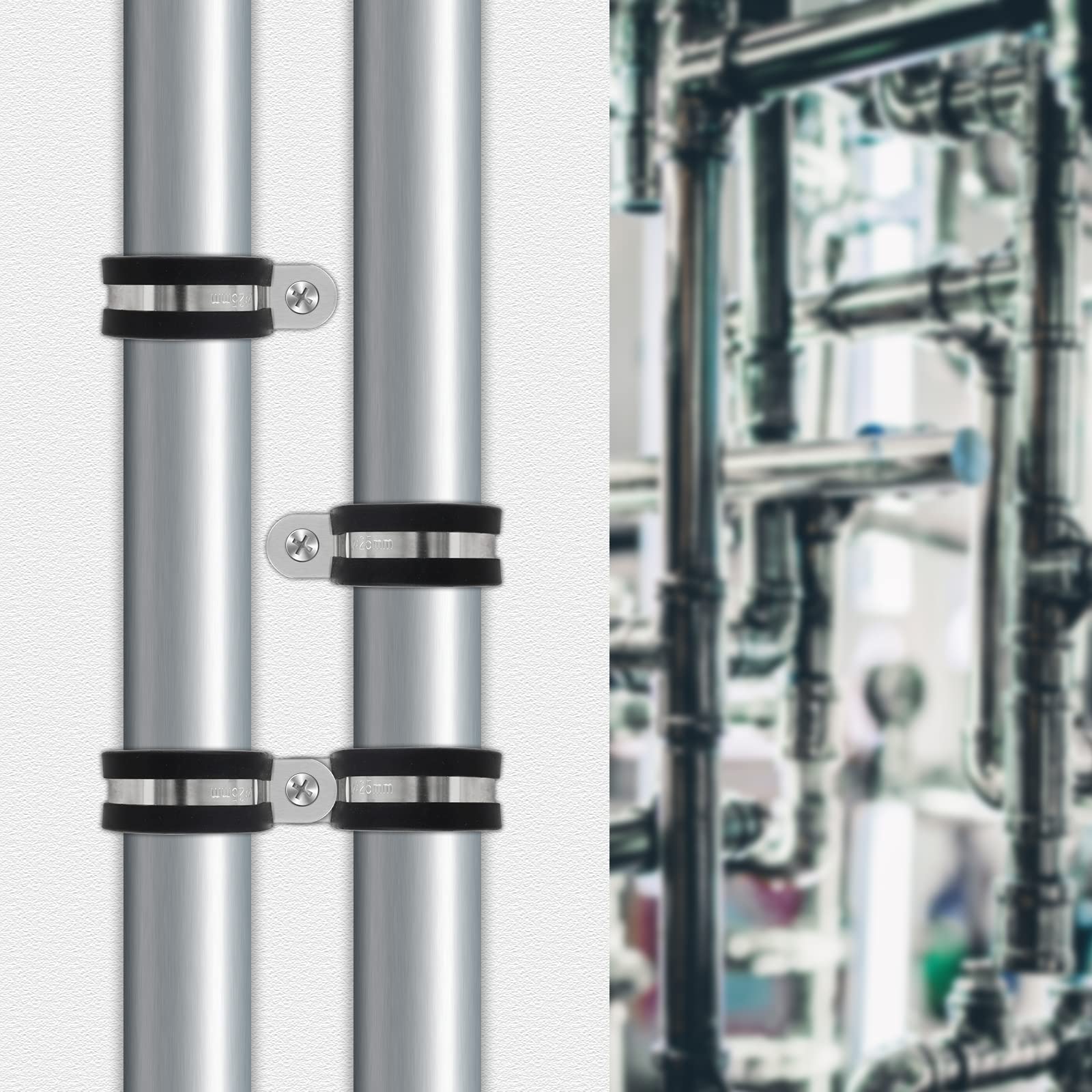 QUARKZMAN 1"(24mm) Kabelklemme, 304 Edelstahl Gummigedämpfte Isolierte Klemme R-Form Metallklemme Rohrhalter Für Rohr Schlauch Draht Kabelinstallation 8 Stück