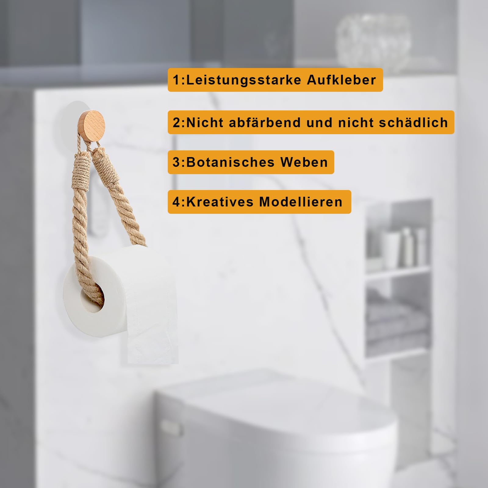 Seil Toilettenpapierhalter, Klorollenhalter Wand Vintage, Vintage Klopapierhalter Ohne Bohren, Hanfseil Wc-Papierhalter, Seil Holz Klopapierhalter Selbstklebend, Klopapierhalter Selbstklebend Holz