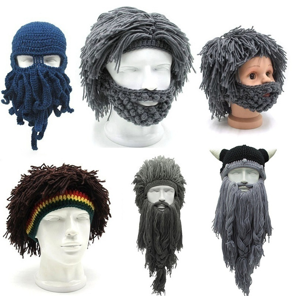 YWTAENOH Creative Barbarian Knit Beard Hat Funny Knit Hat Wig Beanie