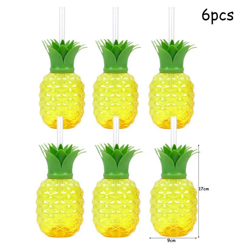 6/12 Stücke Sommer Tropischen Ananas Kokos Trinken Kunststoff Tasse Sommer Strand Pool Hawaii Luau Geburtstag Party Koration Stroh Tasse