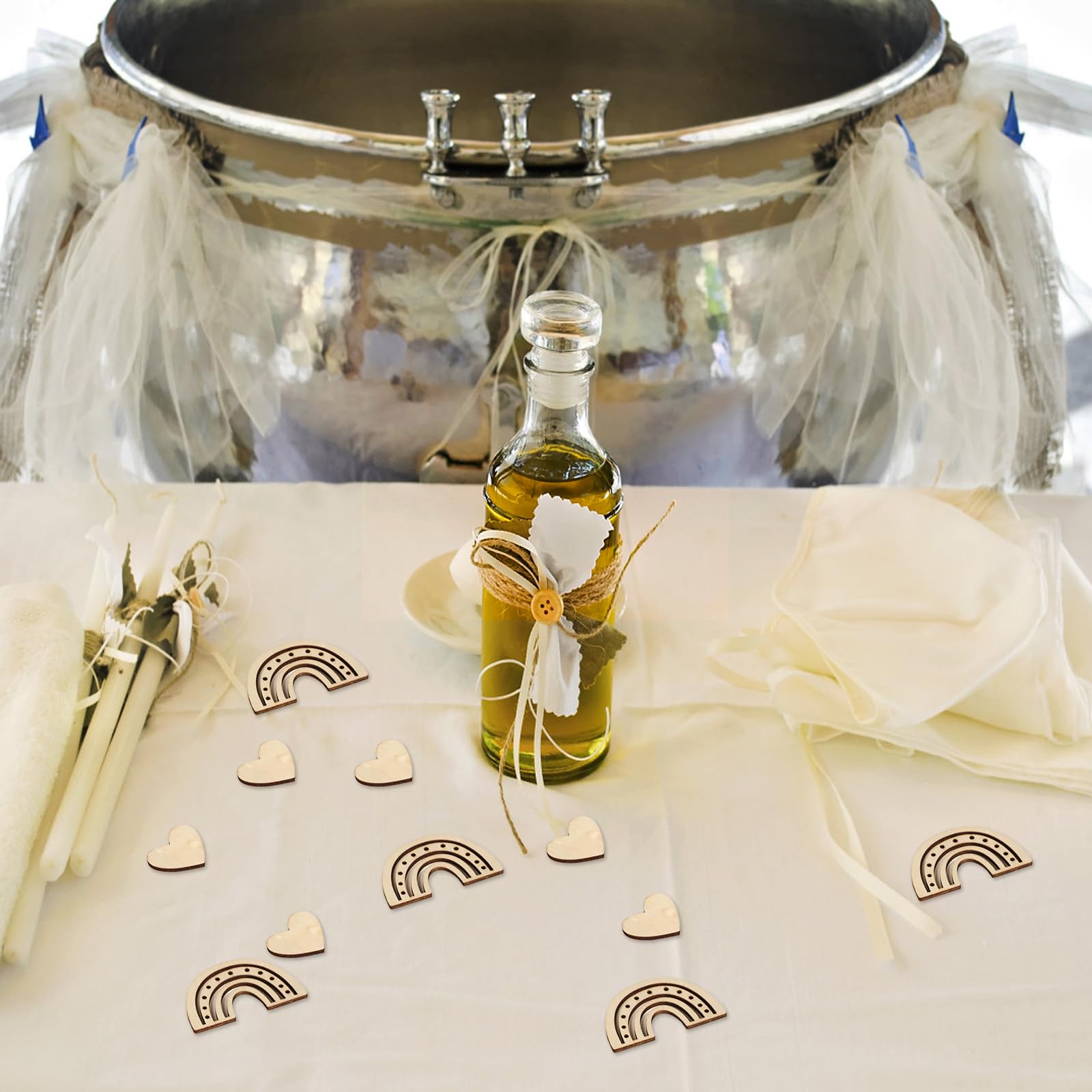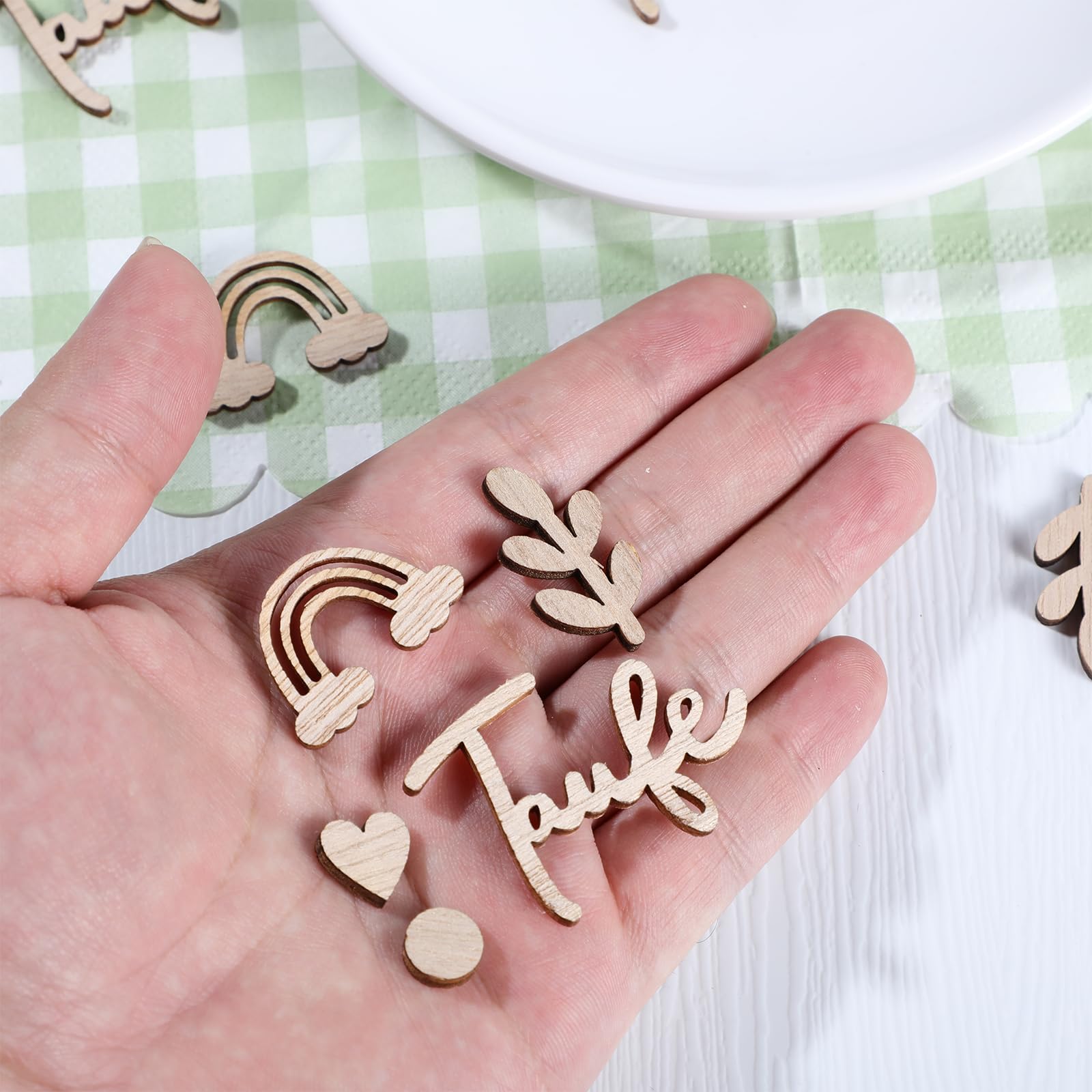 100 Stück Konfetti Holz Boho Tischdeko, Babyparty Taufe Deko Streudeko Taufe, Konfetti Regenbogen Herz Deko Tischdeko Taufe Für Junge Mädchen