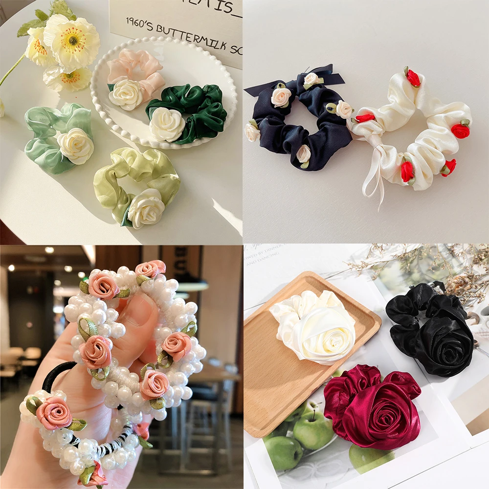 Koreanische Frauen Rose Elastische Haarbänder Krawatten