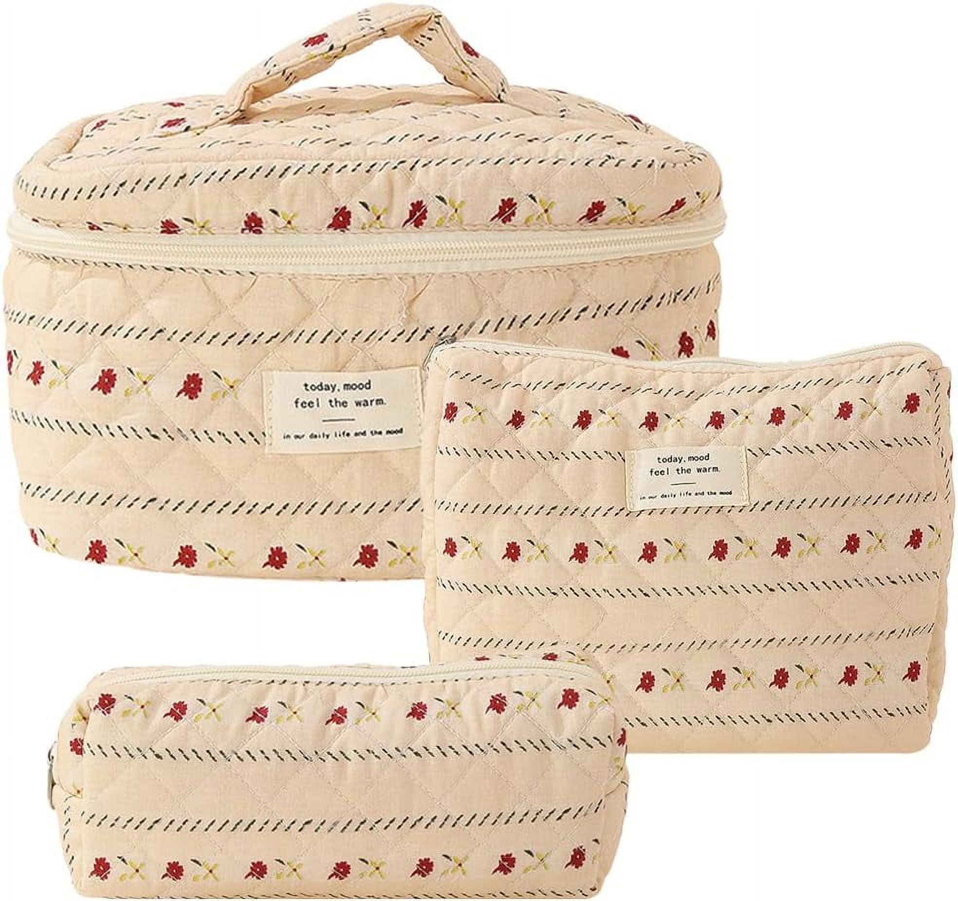 TOPASION Kosmetiktasche Aus Baumwolle, Für Reisen, Make-up, Gesteppt