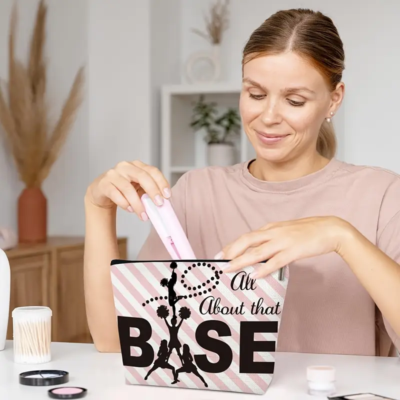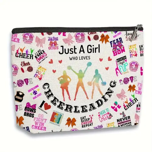 Mehrzweck: Unsere bedruckte Make-up-Tasche ist leicht zu reinigen und zu waschen, hat großen Platz für viele Gegenstände, wie Make-up-Pinsel, Lippenstift, Handys, Toilettenartikel und mehr; kann auch als Kosmetiktasche, Kosmetiktasche, Make-up-Bürstentasche, Reisetasche, Aufbewahrungstasche, tragbare Waschtoiletten-Organizer-Tasche, Geldbörse usw., verwendet werden. Schinktasche für akeup Tasche Cheerleading Girl Fühlt sich weich an Sehr praktisch, um alle kleinen Dinge sortiert aufzubewahren. Modisches Design: Die Kosmetiktasche ist beidseitig bedruckt, exquisite Muster und Schrift schreiben, es gibt Arten von inspirierten, lustigen, süßen Kosmetiktaschen für Ihre Wahl, es kann Sie von der Masse abheben. Es ist die perfekte Lösung für die Aufbewahrung von Sonnencreme, Make-up, femininen Produkten, Hautpflege, Snacks, Reiseaktivitäten. Glatter Reißverschluss in vantage Aussehen, eng zum Schutz von Gegenständen, kann sicherstellen, dass Ihre Gegenstände nicht leicht herunterfallen. Wichtigste Highlights · 1. Über die Größe der Leinentasche: 23 x 17 x 5 cm. · 2. Tragbarer Organizer Premium-Material: Hergestellt aus hochwertiger Baumwolle und Leinen-Material, ist die Tasche kratzfest, langlebig und wasserabweisend, der stabile Reißverschluss kann Ihre Schönheitsprodukte an Ort und Stelle halten. DJHUNG Lustige Cheerleading-Kosmetiktasche Make-up-Tasche